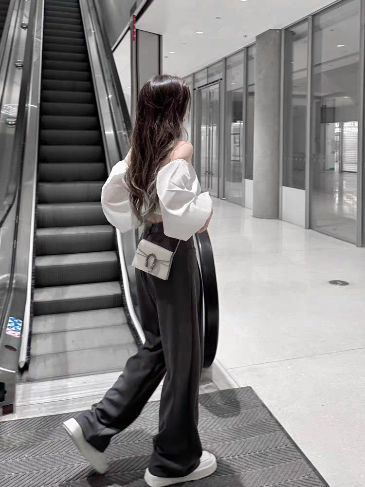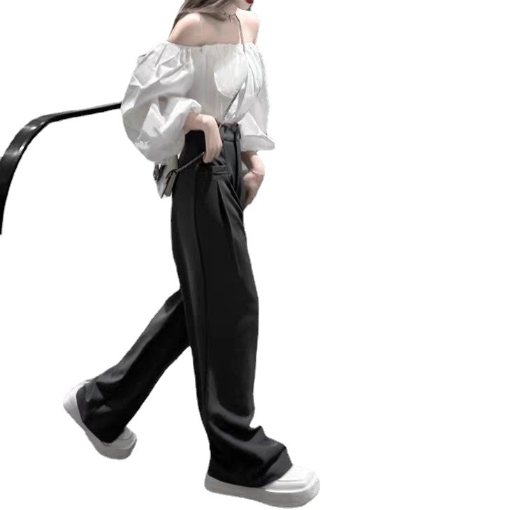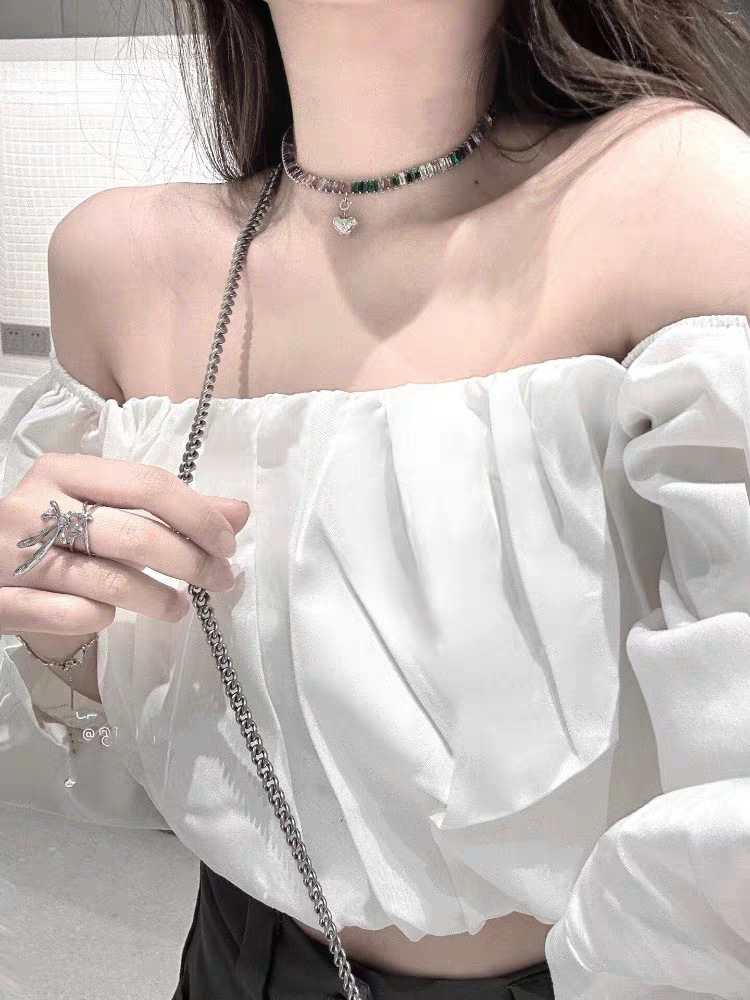 一字肩泡泡袖露肩鱼骨短款t恤女夏季雪纺衫辣妹薄款抹胸上衣服ins
