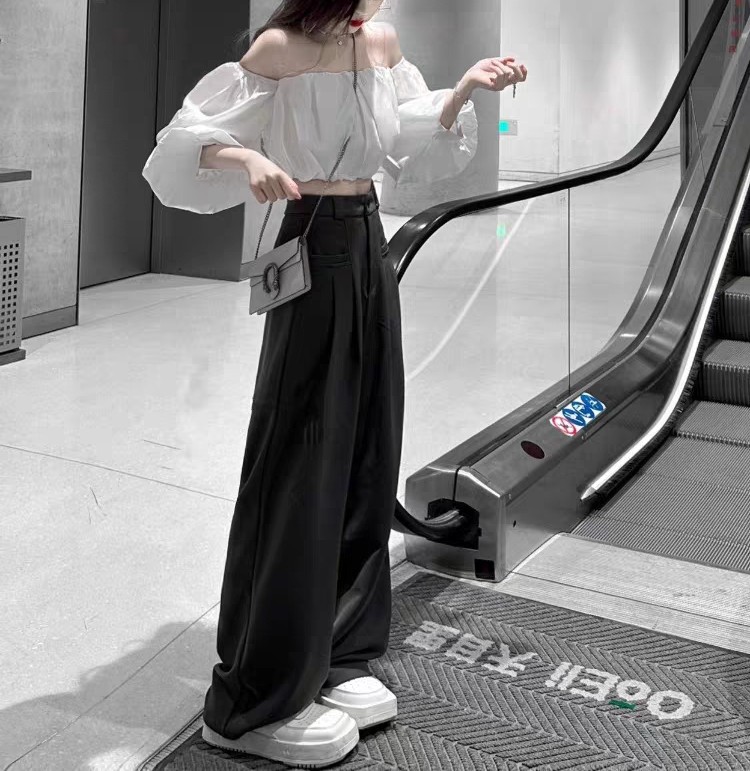 黑色破洞牛仔女高街直筒乞丐春季薄款宽松垂感高腰阔腿拖地长裤潮