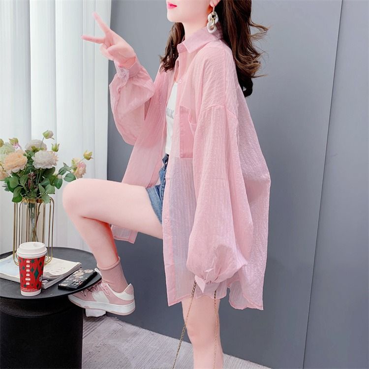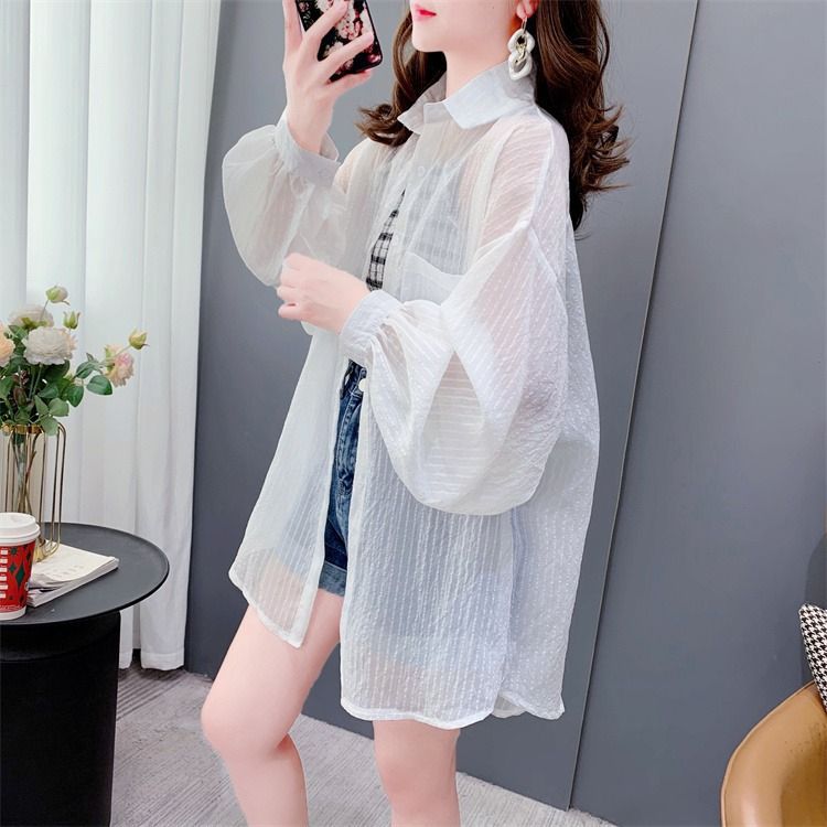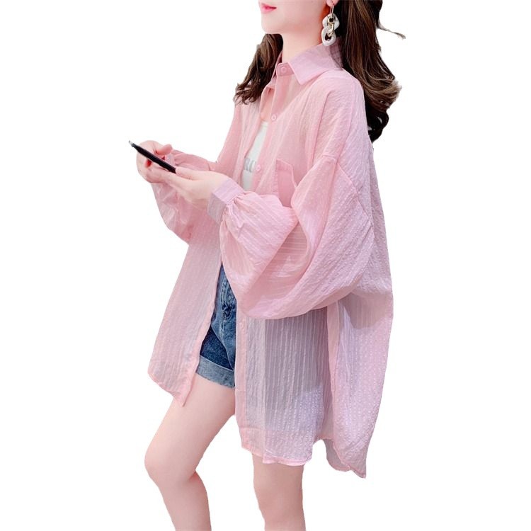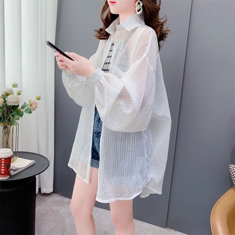 跨境夏季韩版大码女装中长款薄款开衫防晒衬衫新款上衣外套雪纺衫