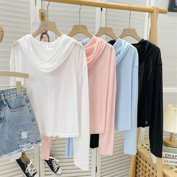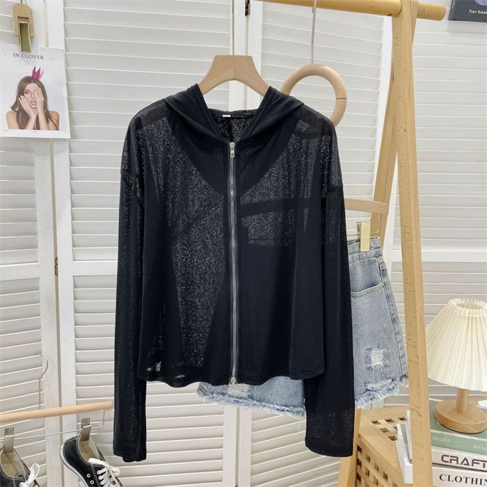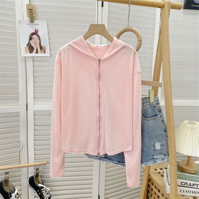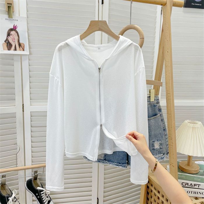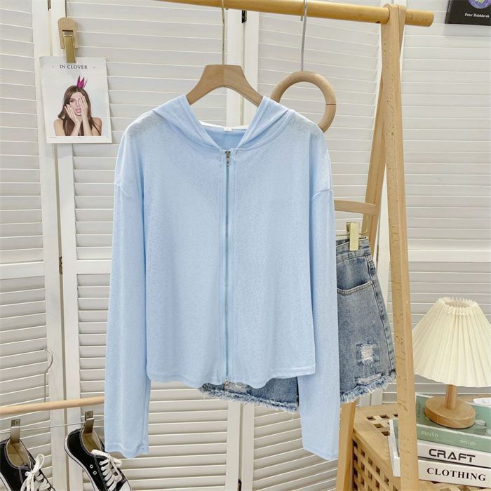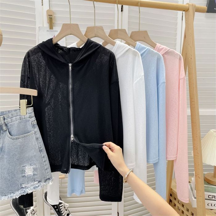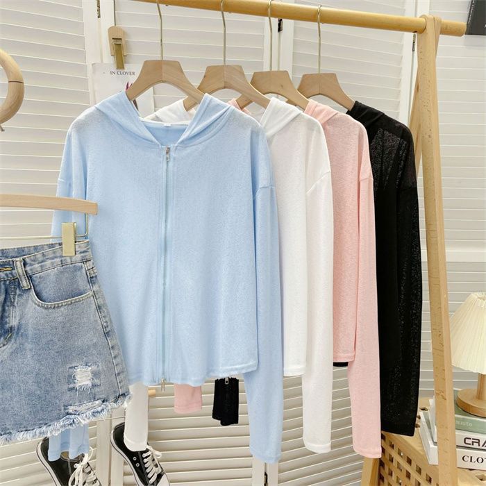 外贸跨境新款后包领领竹节丝针织双头拉链开衫新款连帽潮流雪纺衫