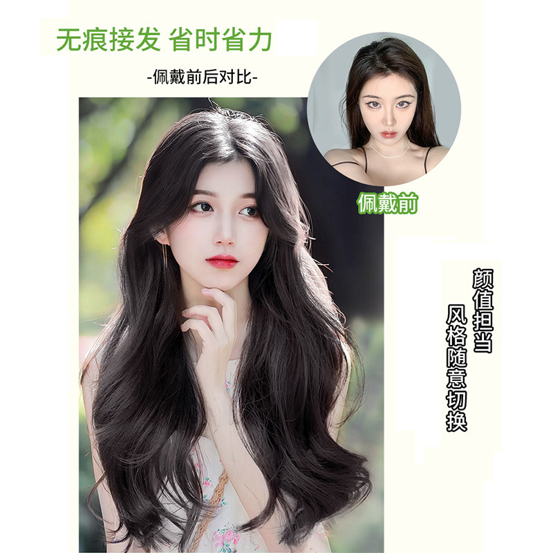 轻薄款假发片卷发三片式蓬松增发量隐形接发片可扎马尾假发女长发