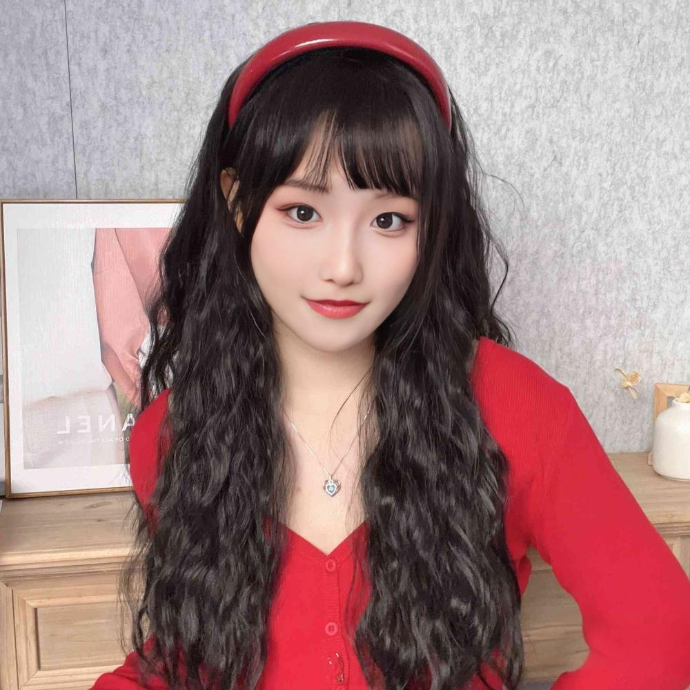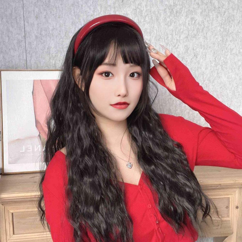 复古红色发箍假发一体式水波纹长卷发蓬松半头套实力