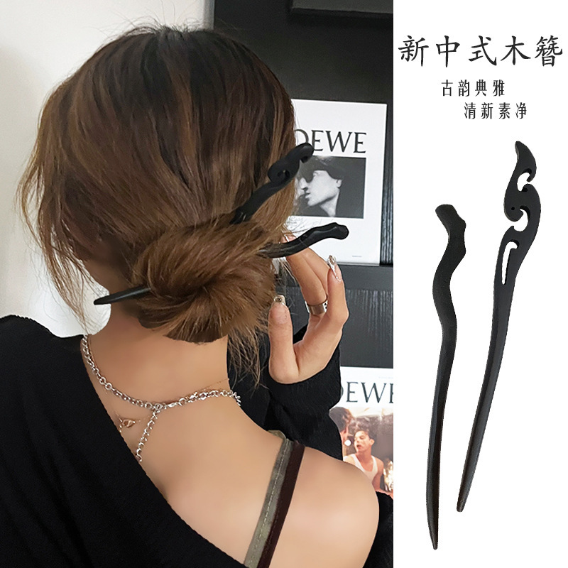 仿黑檀木古风发簪简约现代感木质簪子日常旗袍盘发木头