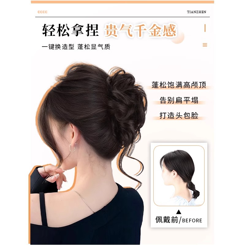 丸子头假发抓夹千金花苞鸡窝头发包古风盘发汉服新中式假发发包