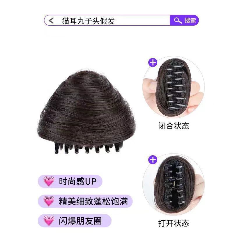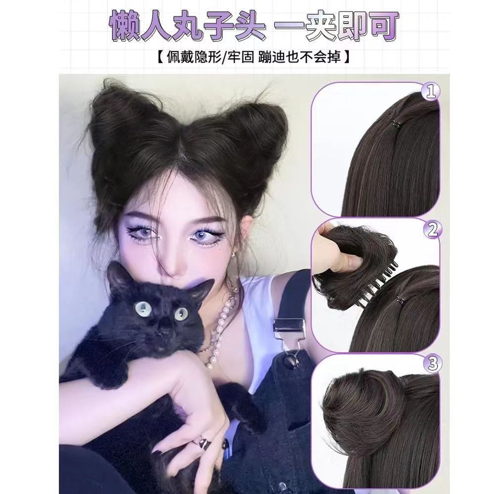 猫耳朵丸子头假发抓夹发包可爱甜美蓬松发夹发圈发饰懒人盘发神器