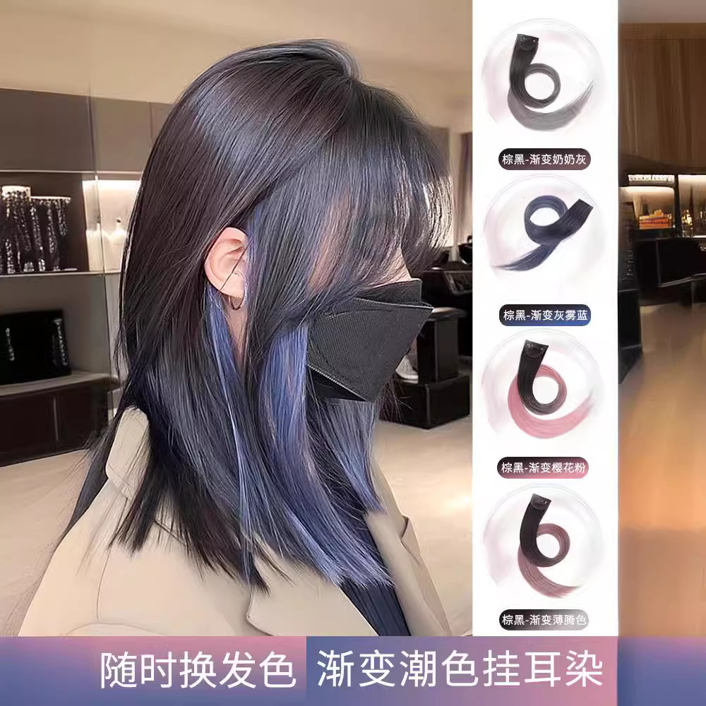 挂耳染发片挑染假发片渐变发色挂耳染无痕接发彩色发片假发女长发
