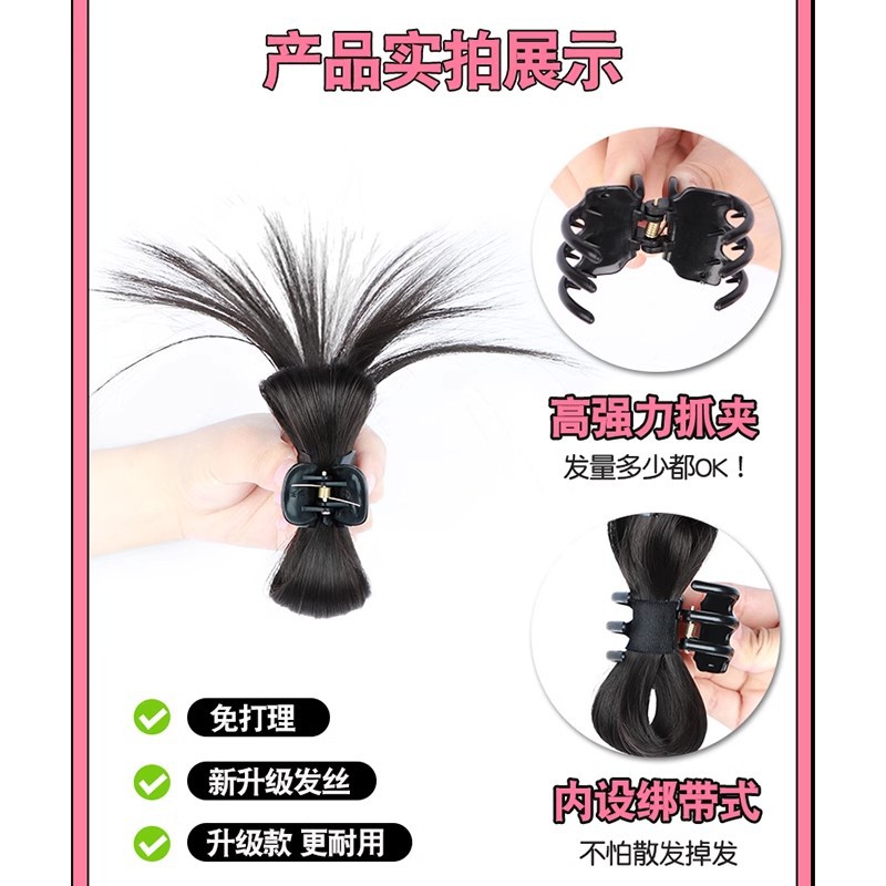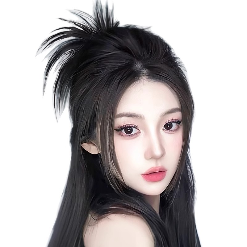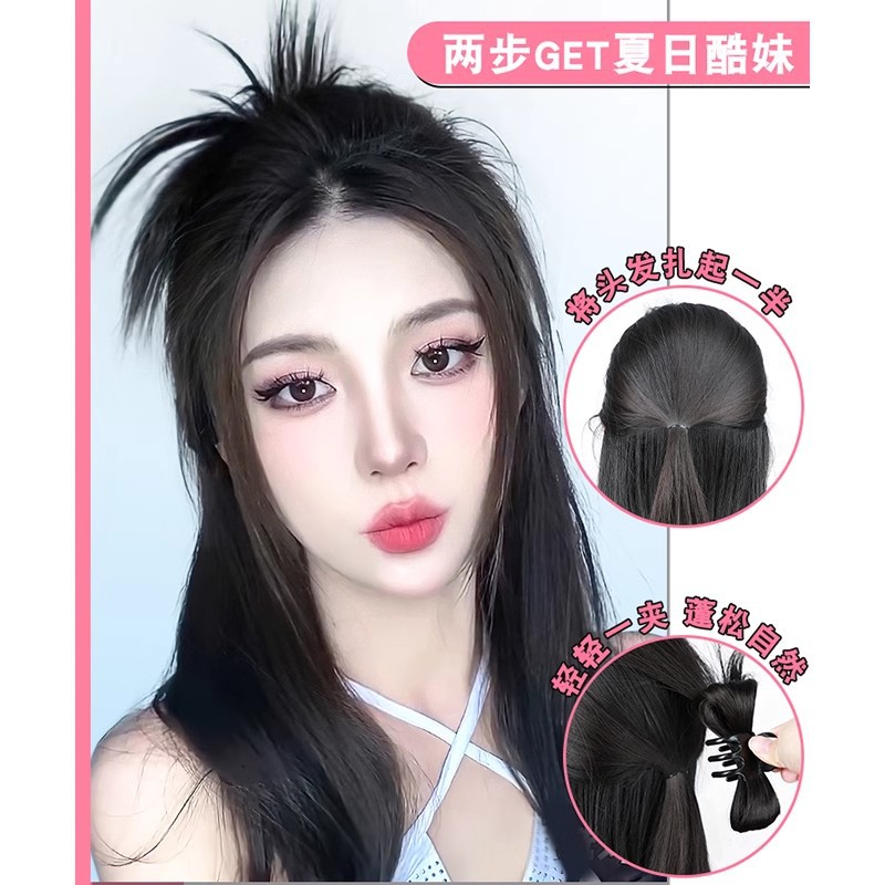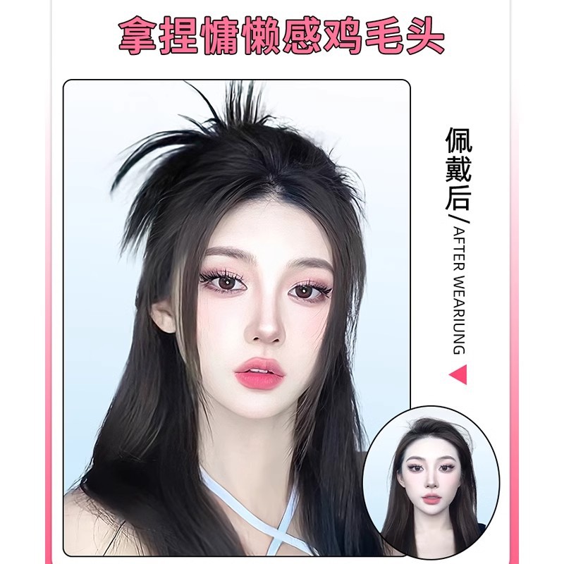 半扎慵懒鸡毛毽子头高颅顶抓夹新款辣妹喷泉高马尾懒人假发女发包