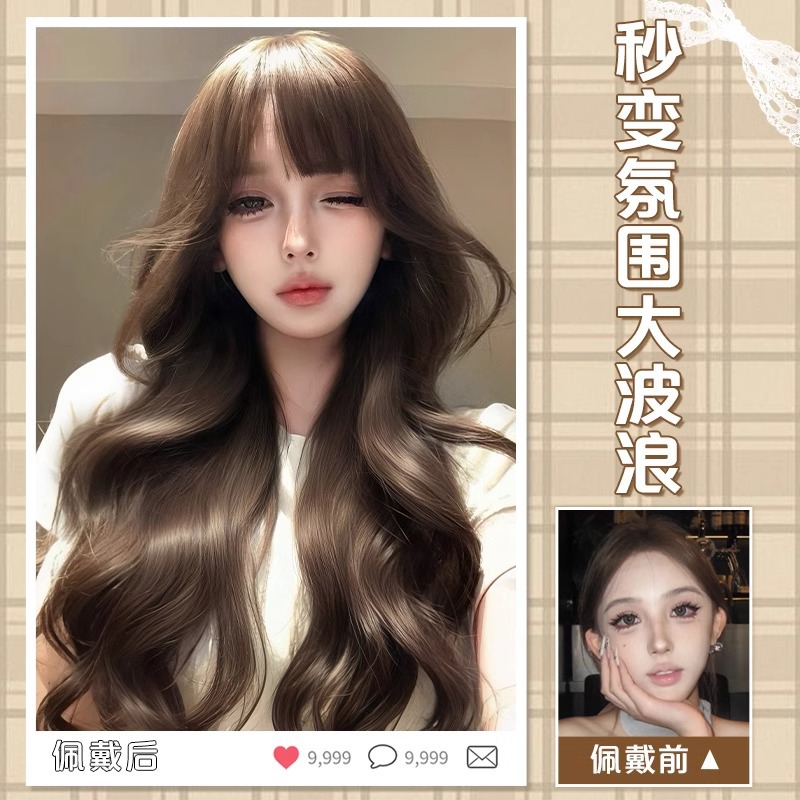 假发女无痕隐形全头套补发片中分大波浪长卷发仿真发