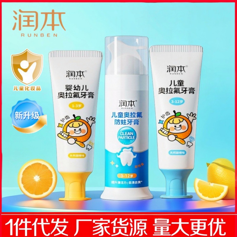 润本奥拉氟儿童牙膏含氟3-6-12岁防蛀牙低氟宝宝换牙期防龋齿