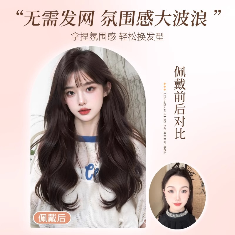 假发女无痕隐形全头套补发片中分大波浪长卷发仿真发