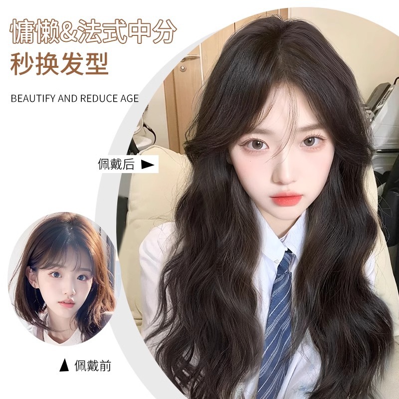 假发全头套女长发仿真发全真人发自然整顶羊毛卷水波纹中分假发套