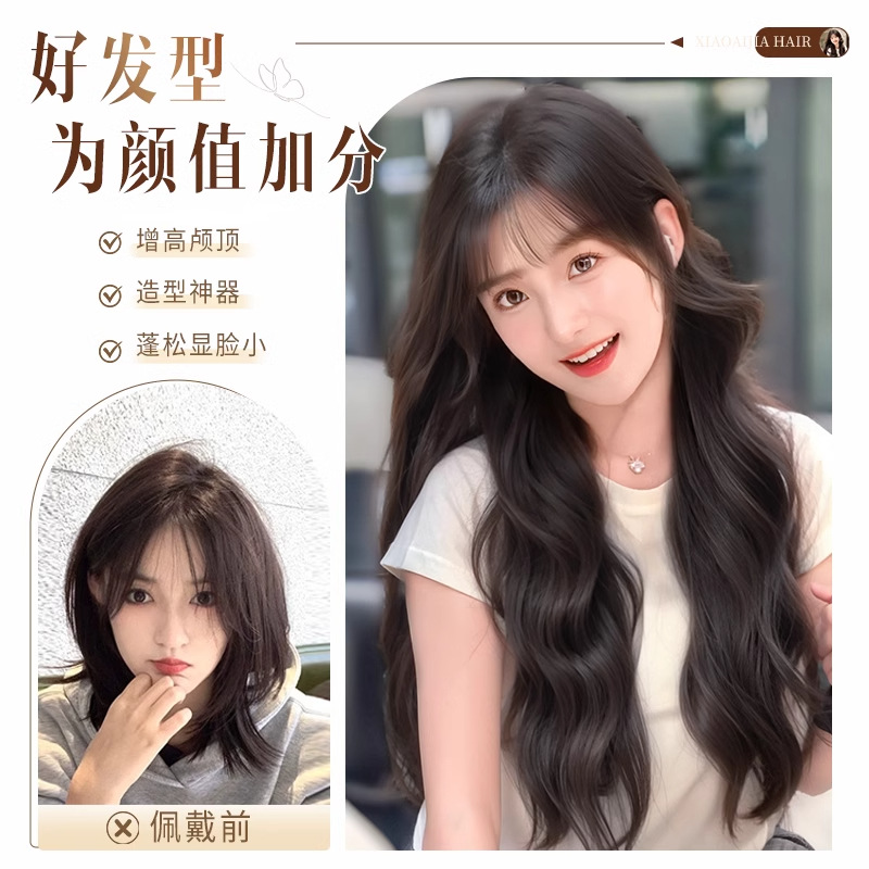 假发女全头套长卷发头顶假发片增发量免戴发网仿真发丝补发假刘海