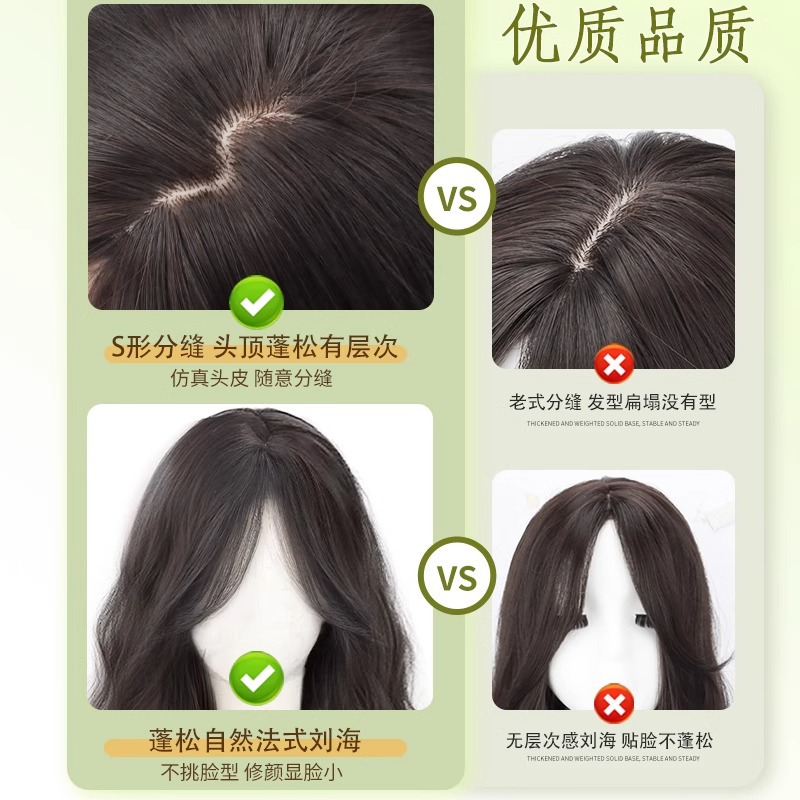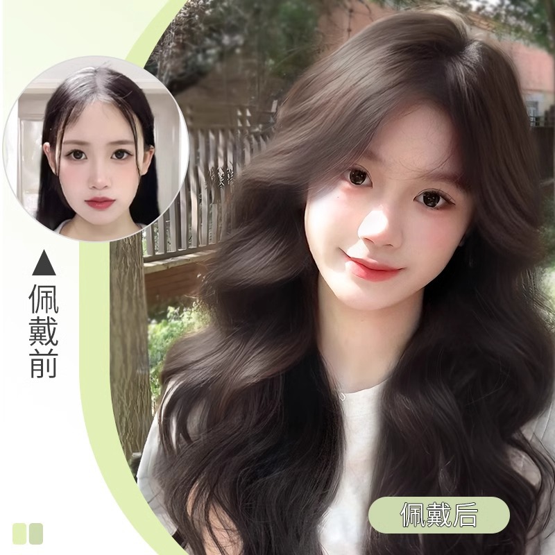 珍珠发箍假发一体时尚化纤高温丝长发半头套先发