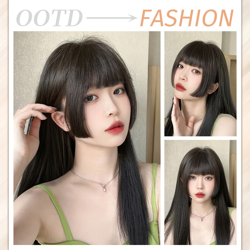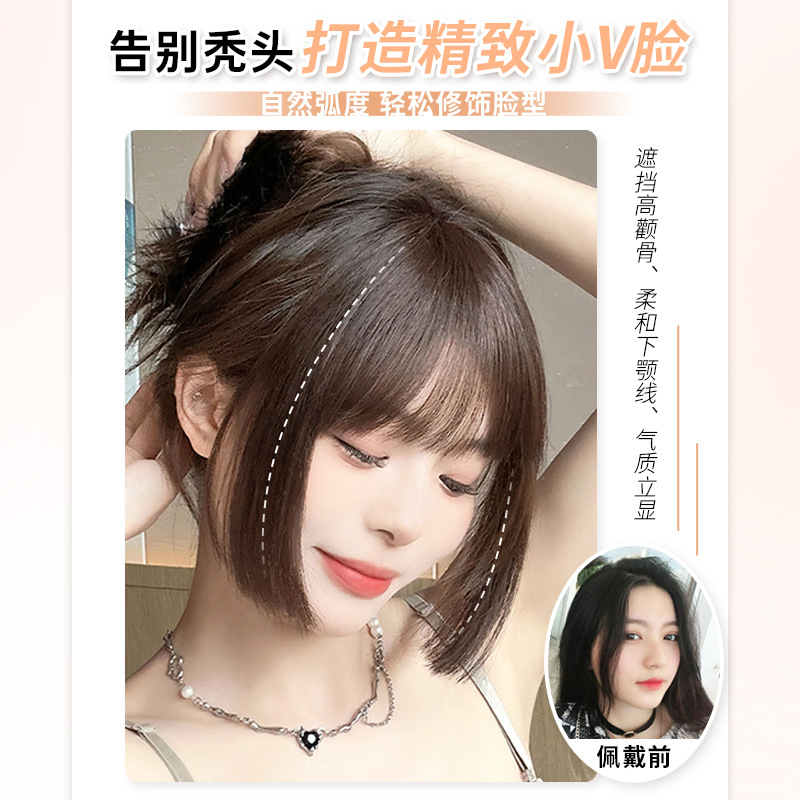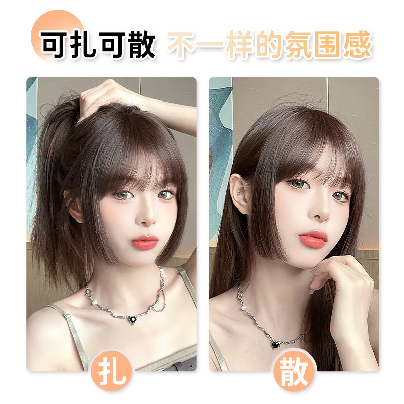 真发公主切假发片刘海假发女中分姬发式隐形自然前额假刘海齐刘海
