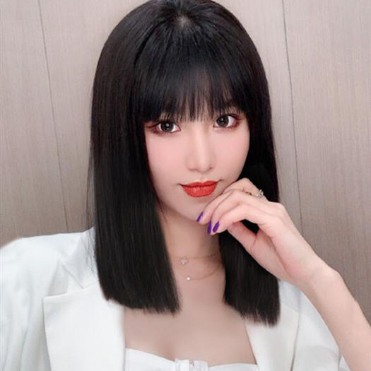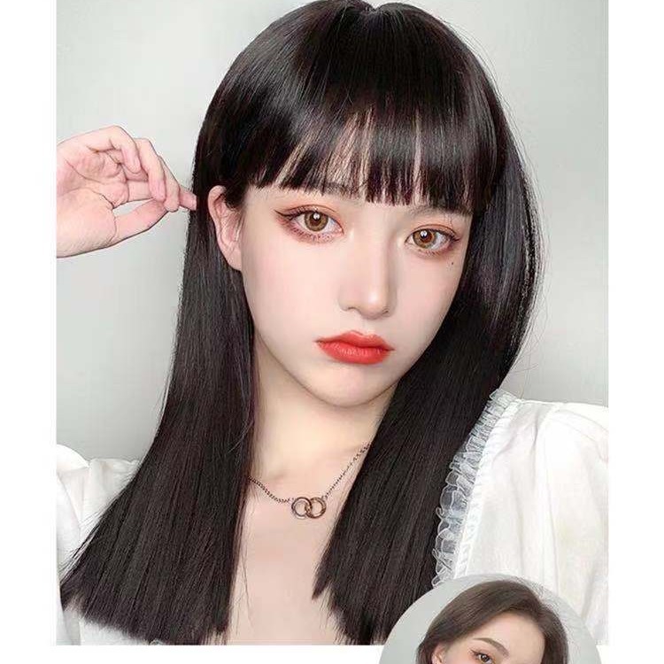 假发女全头漫画黑长直齐刘海自然中长的一刀切中长发头套