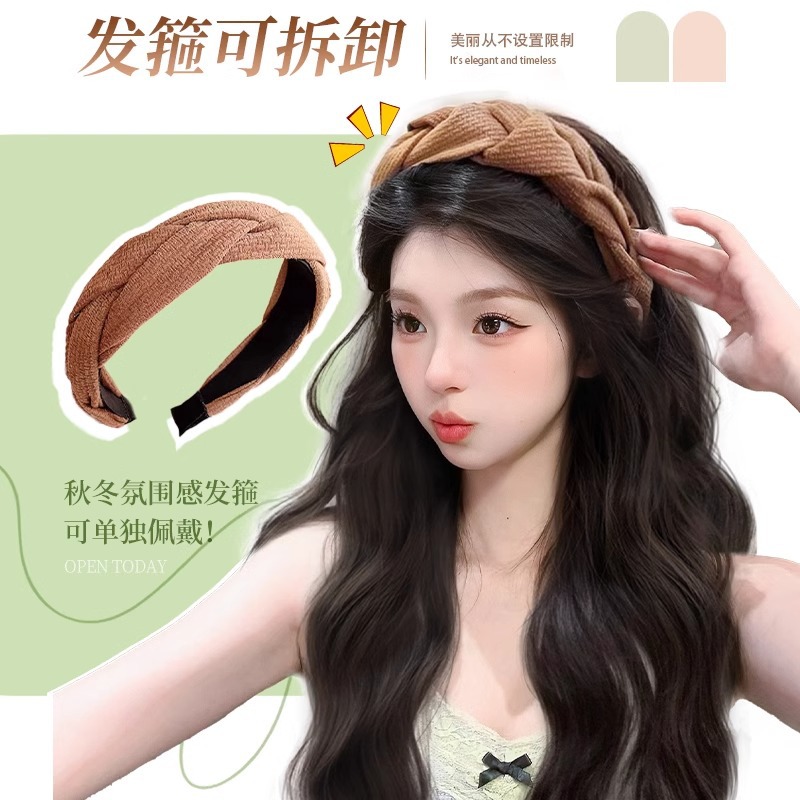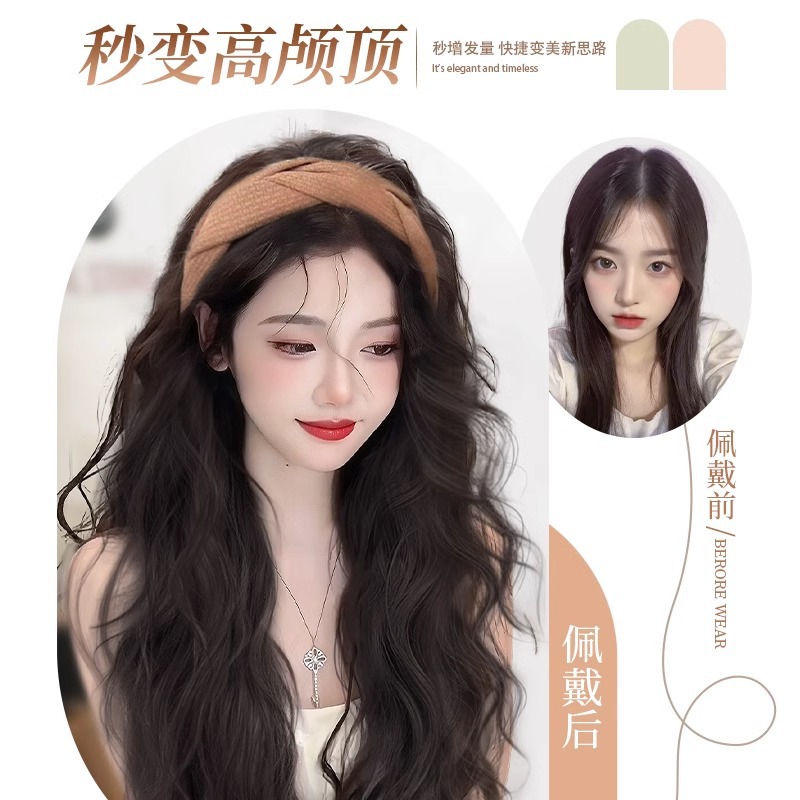 发箍假发一体女长卷发半头套仿真发高颅顶尚水波纹可拆卸全头套