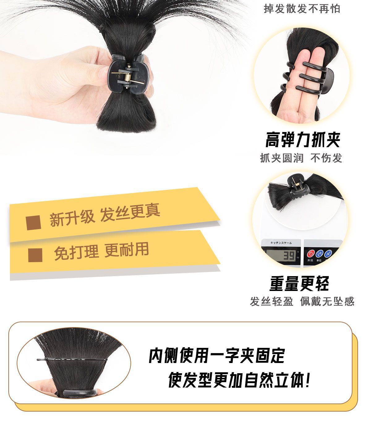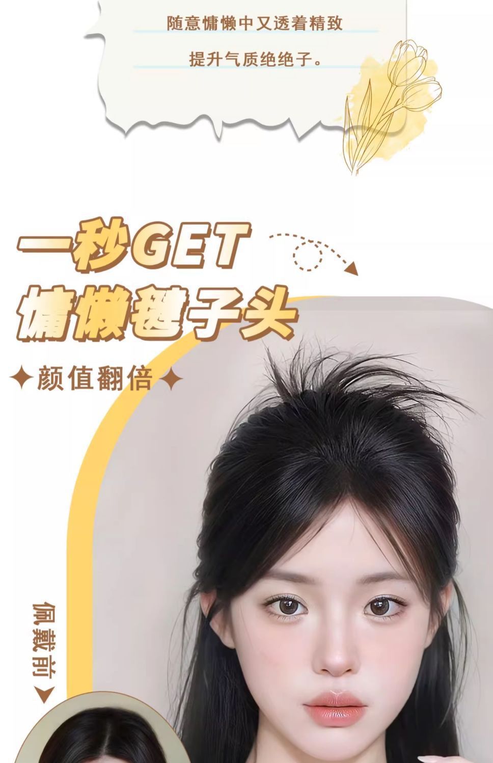 假发女丸子头抓夹慵懒风鸡毛毽子头鸡毛半扎发假发发包