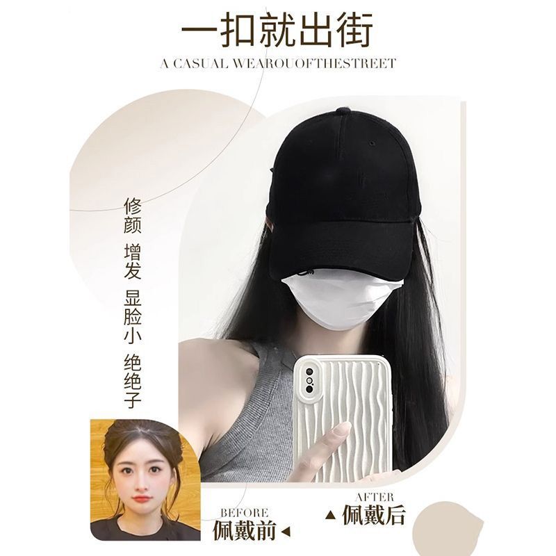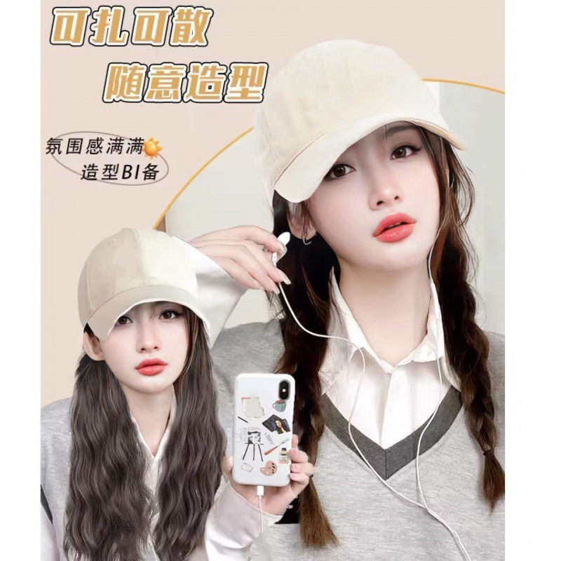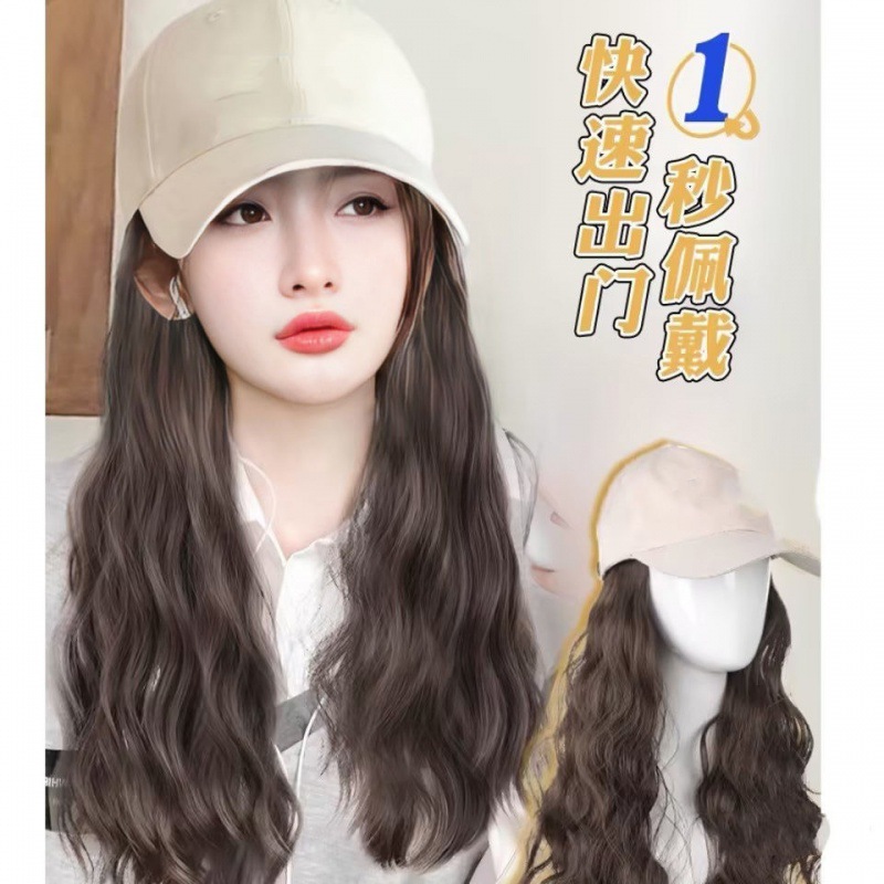 帽子假发女秋冬时尚长卷发鸭舌帽羊毛卷一体网红潮流长直发全头套