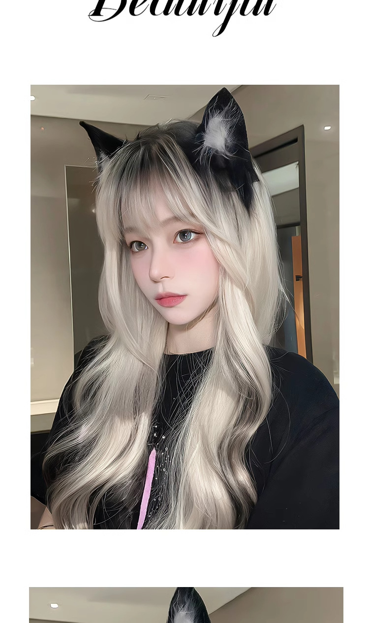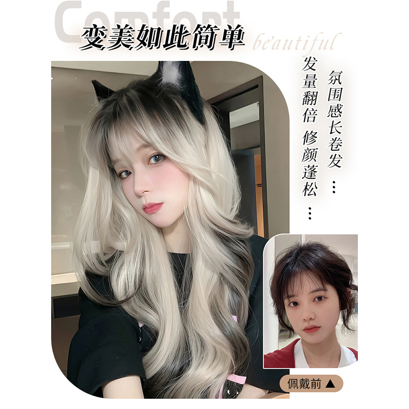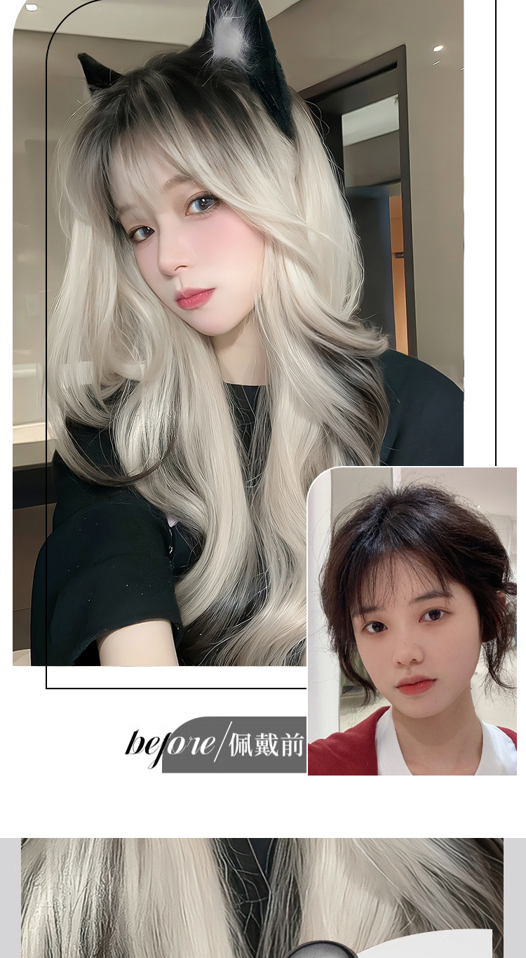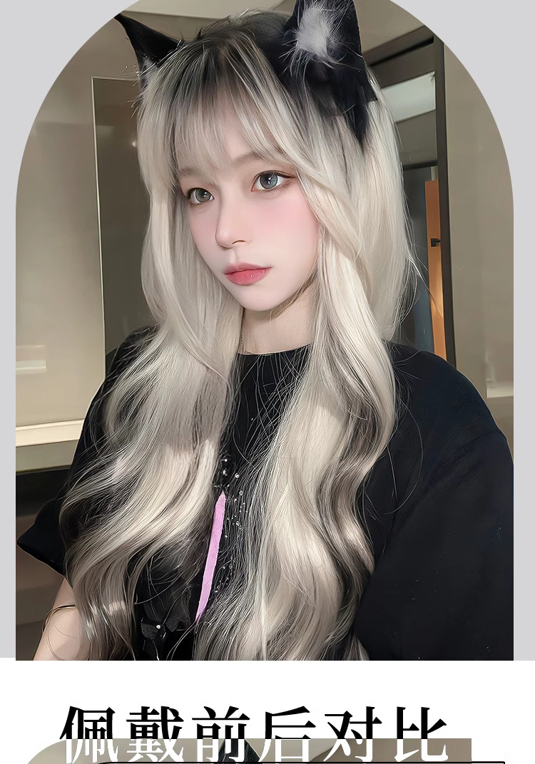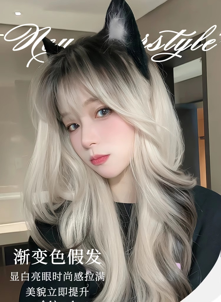 黑白渐变假发女长发全头套式巴黎画染大波浪长卷发暹罗猫发色假发