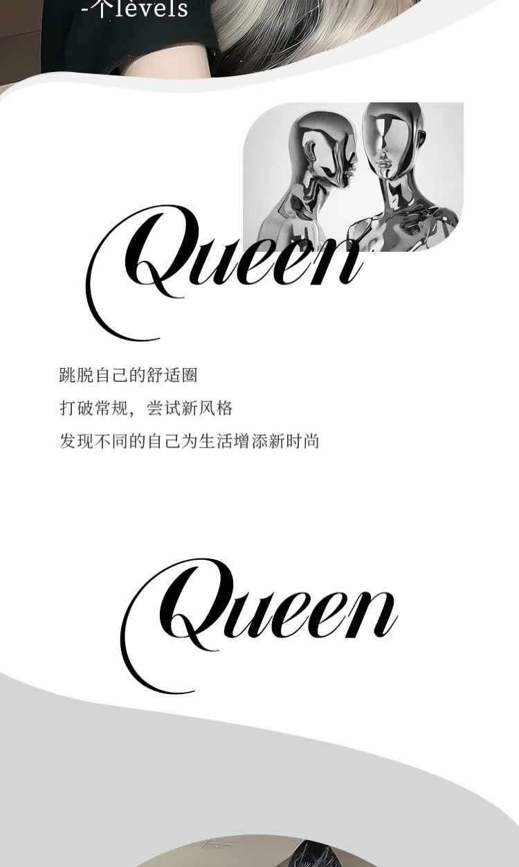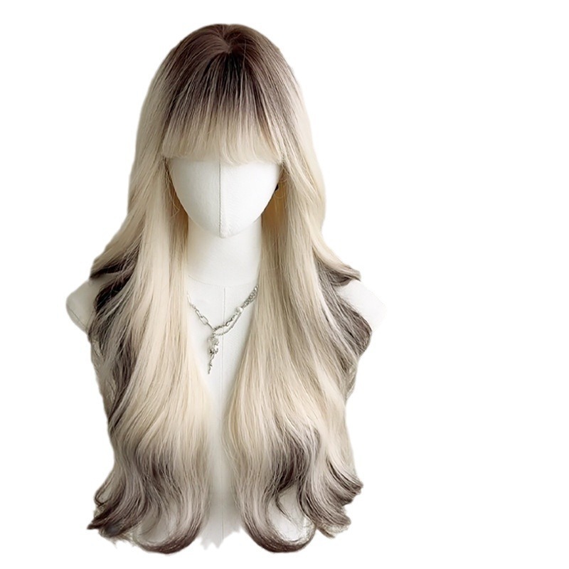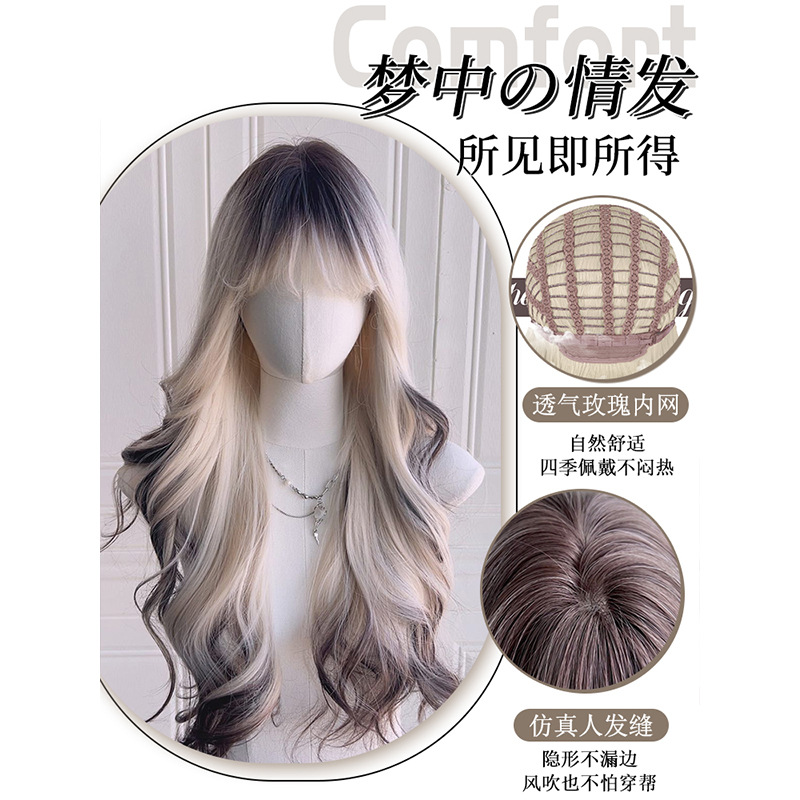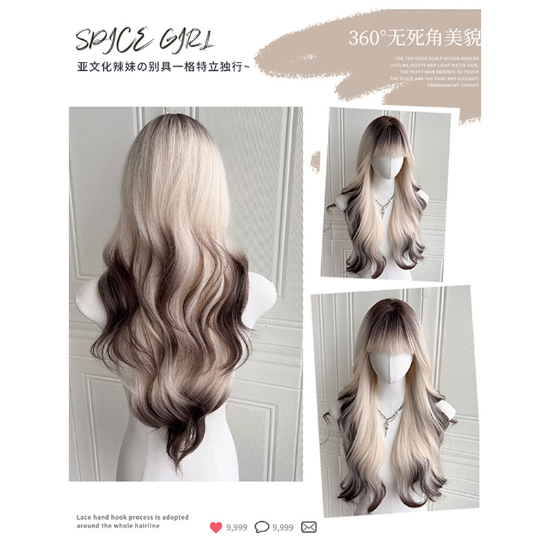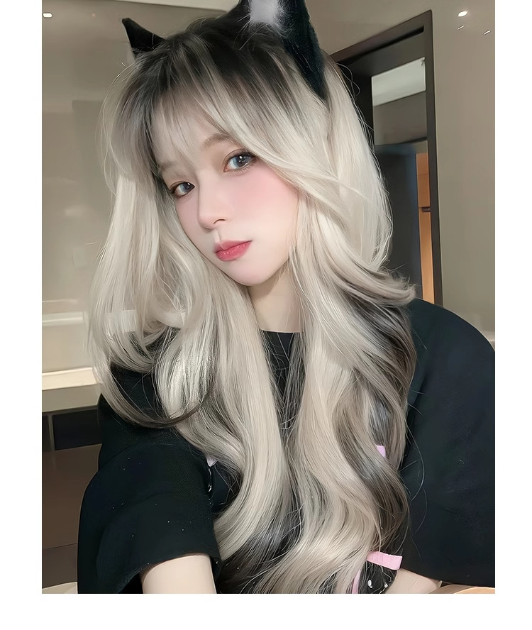 黑白渐变假发女长发全头套式巴黎画染大波浪长卷发暹罗猫发色假发