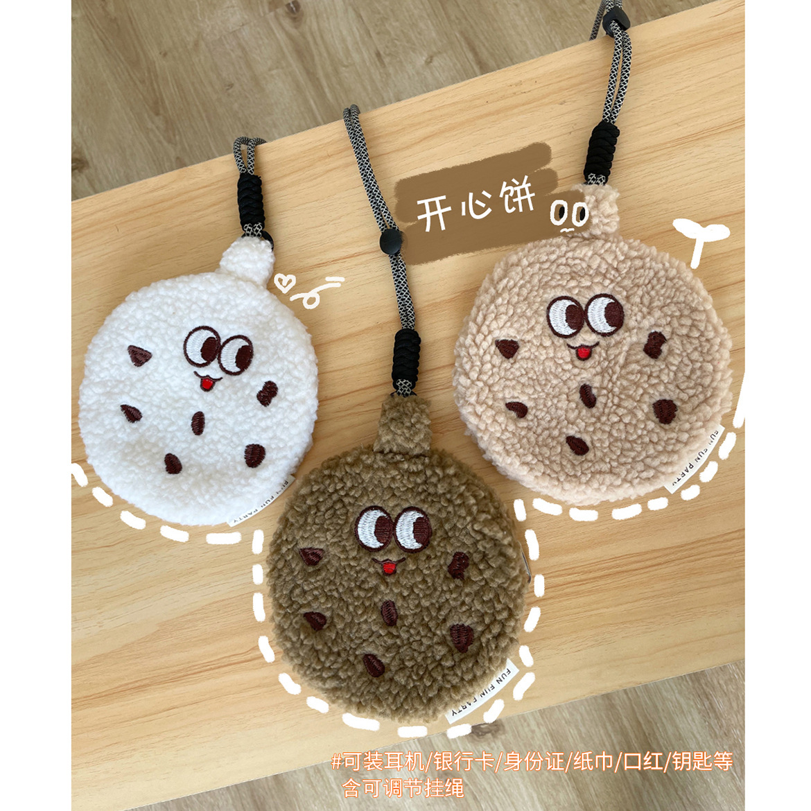 曲奇饼干包可爱笑脸毛绒挂脖包搞怪表情耳机包零钱卡化妆品收纳包