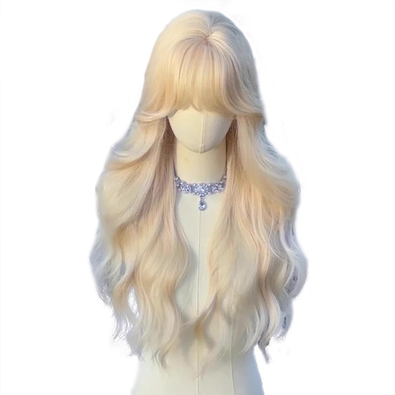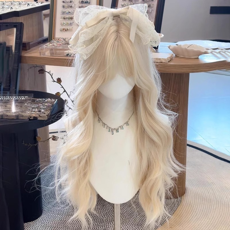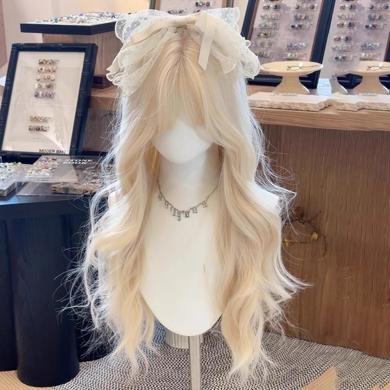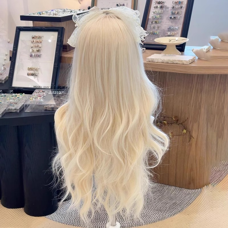 假发全头套女长发夏季薄款奶白金色lolita大波浪长卷发自然假发套
