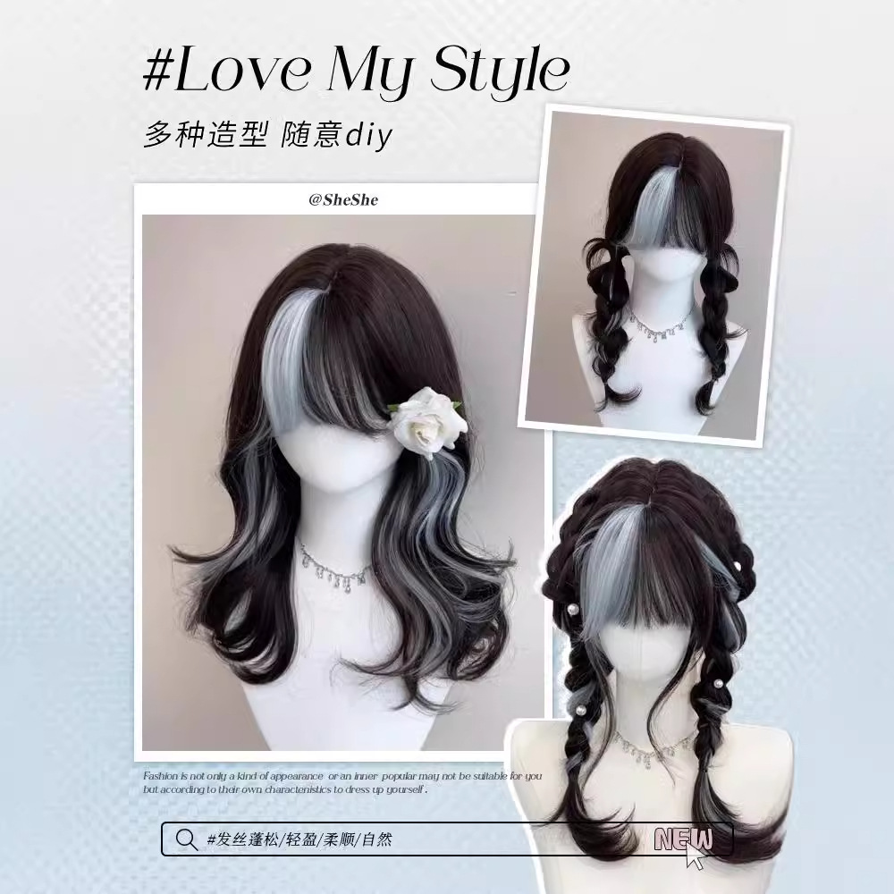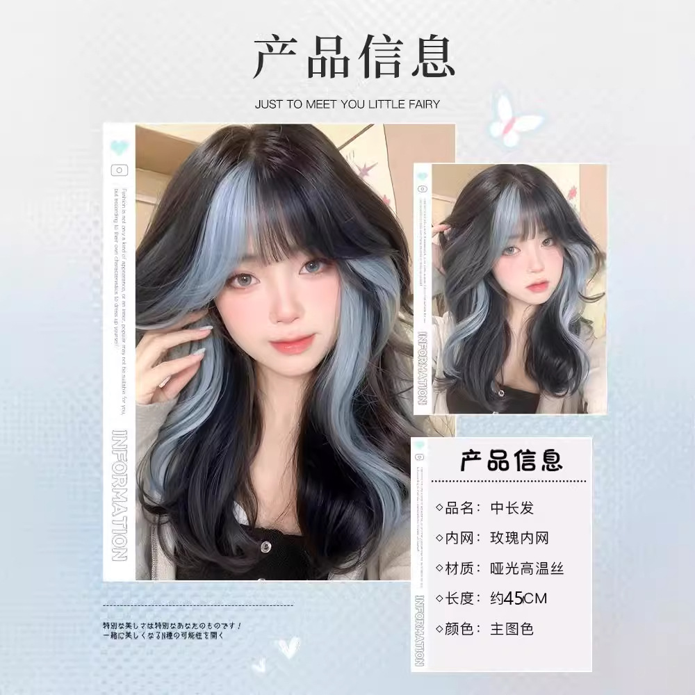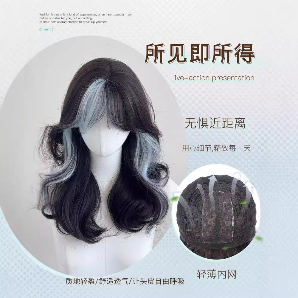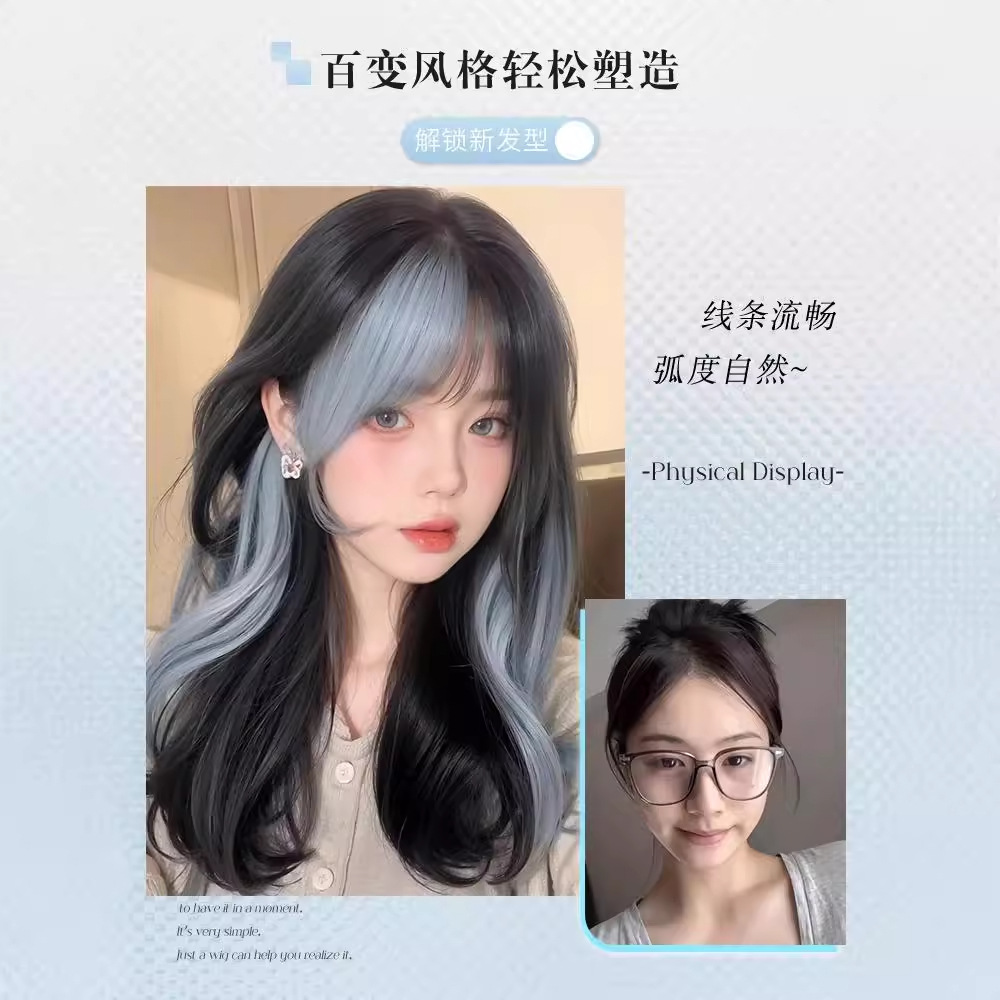 假发女长发夏季薄款渐变挑染Baby蓝刘海染中长卷发自然仿真全头套