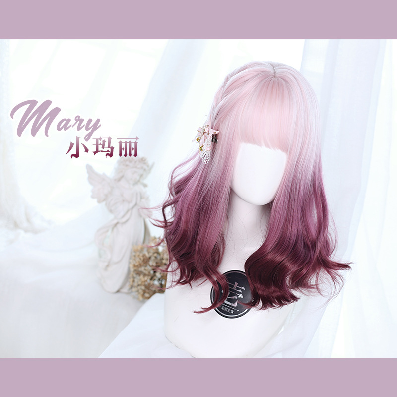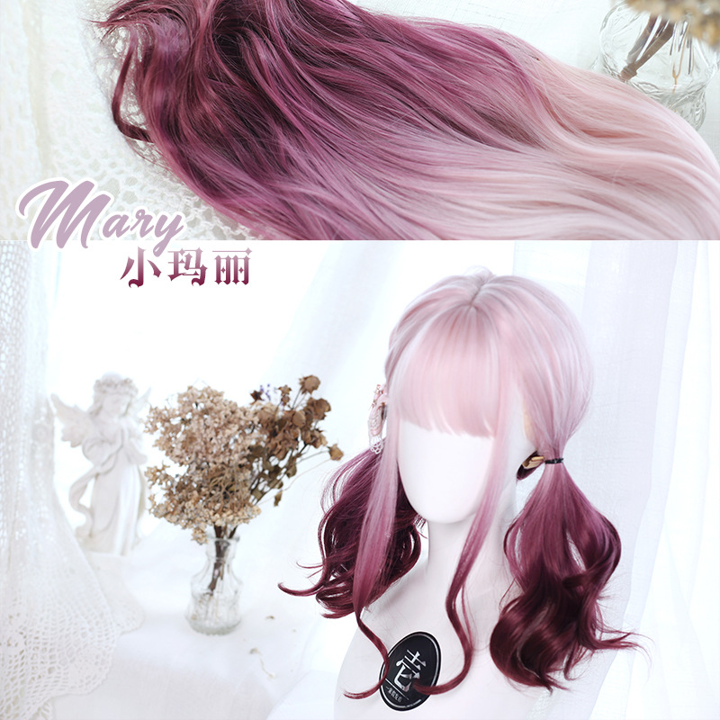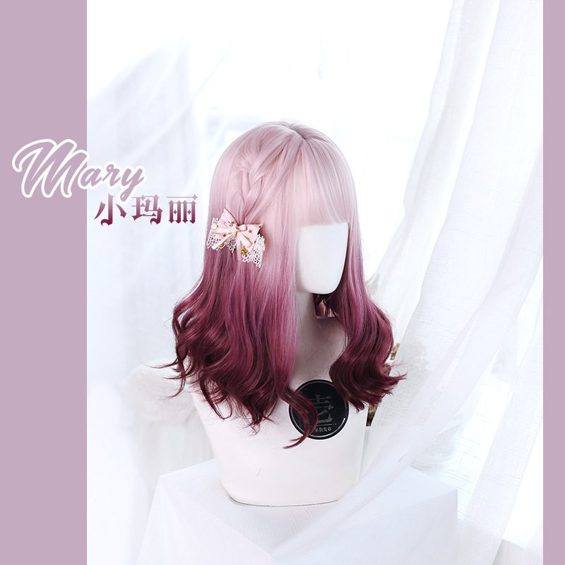 假发女洛丽塔小玛丽粉色渐变双色小卷假发原宿Y-100