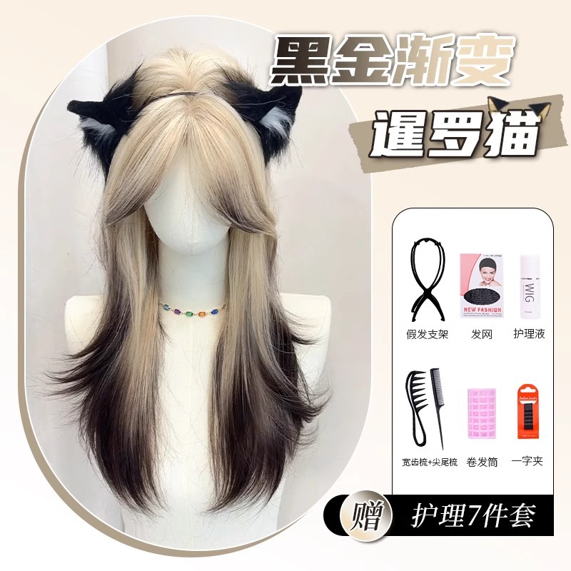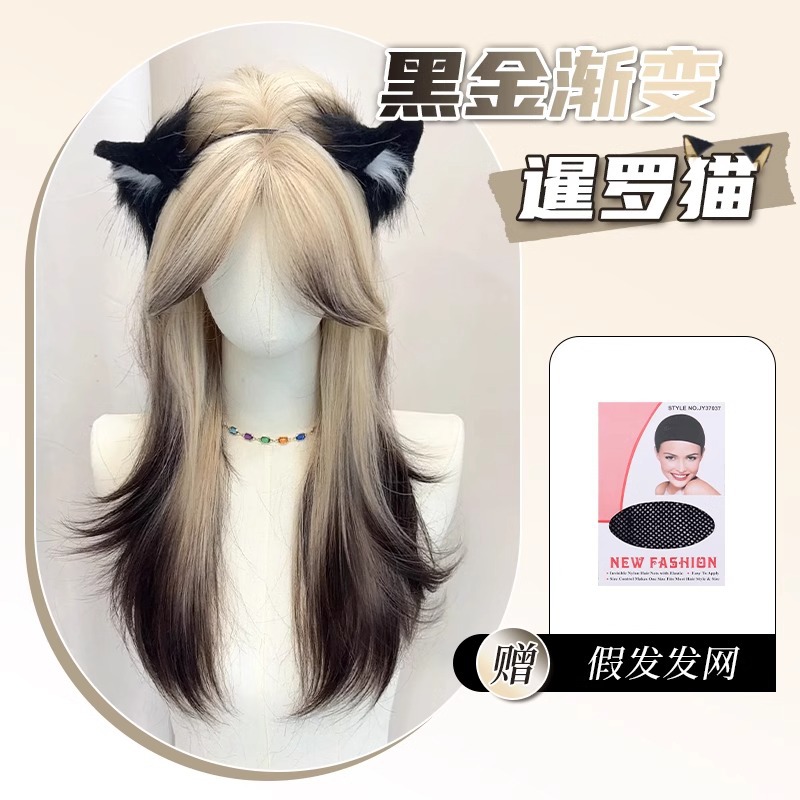 假发女长发全头套式暹罗猫渐变层次感中分八字仿全真人长直发假发