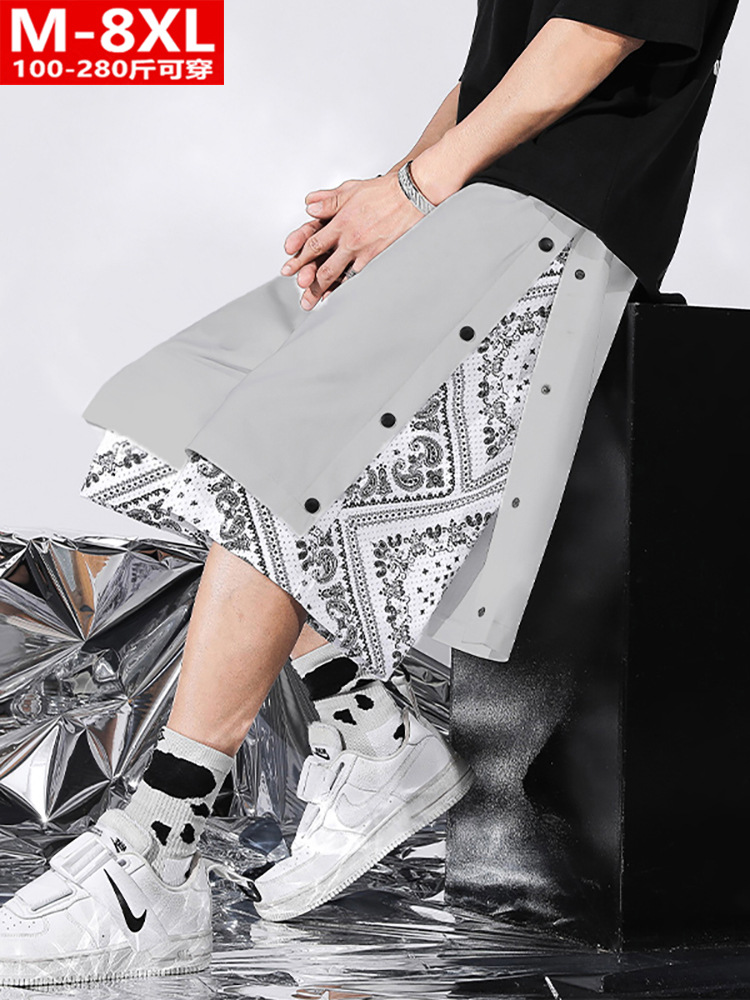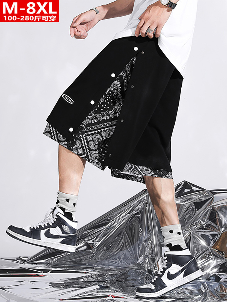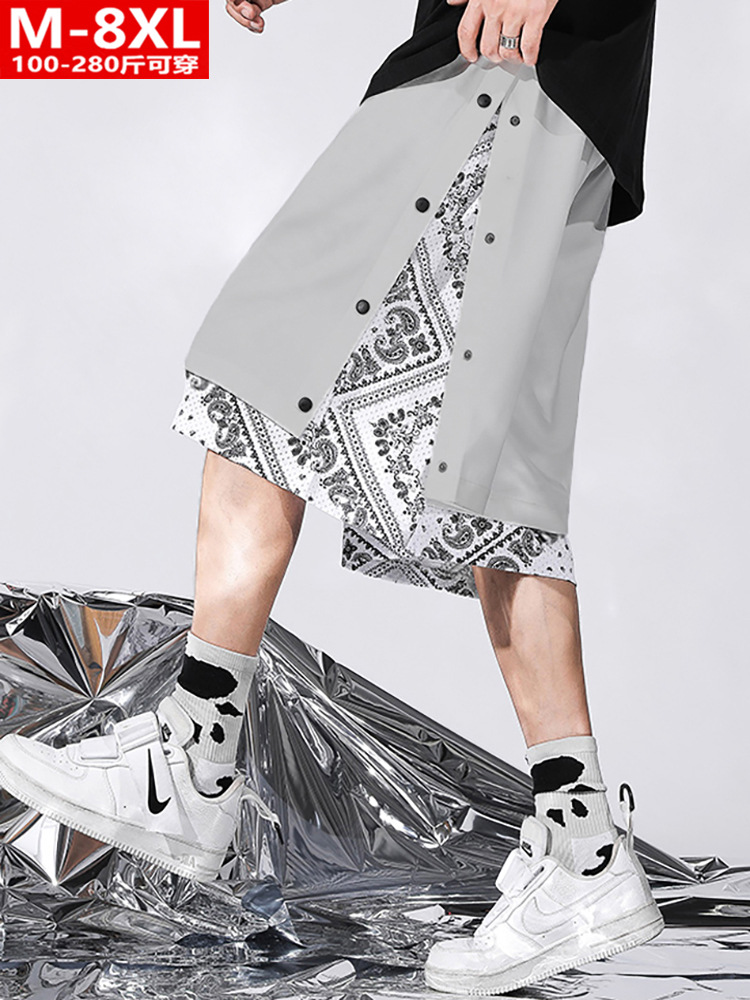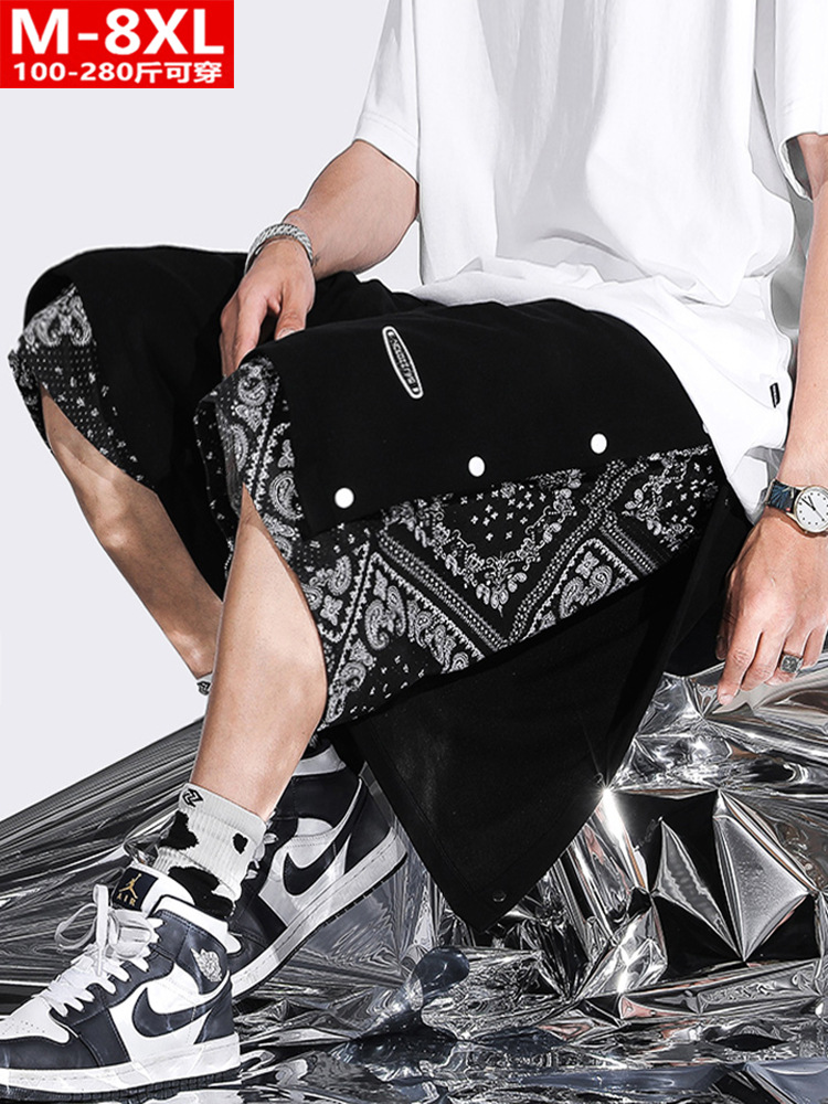 夏装潮流港风男士假两件腰果花五分裤胖大码加肥宽松裤衩休闲中裤