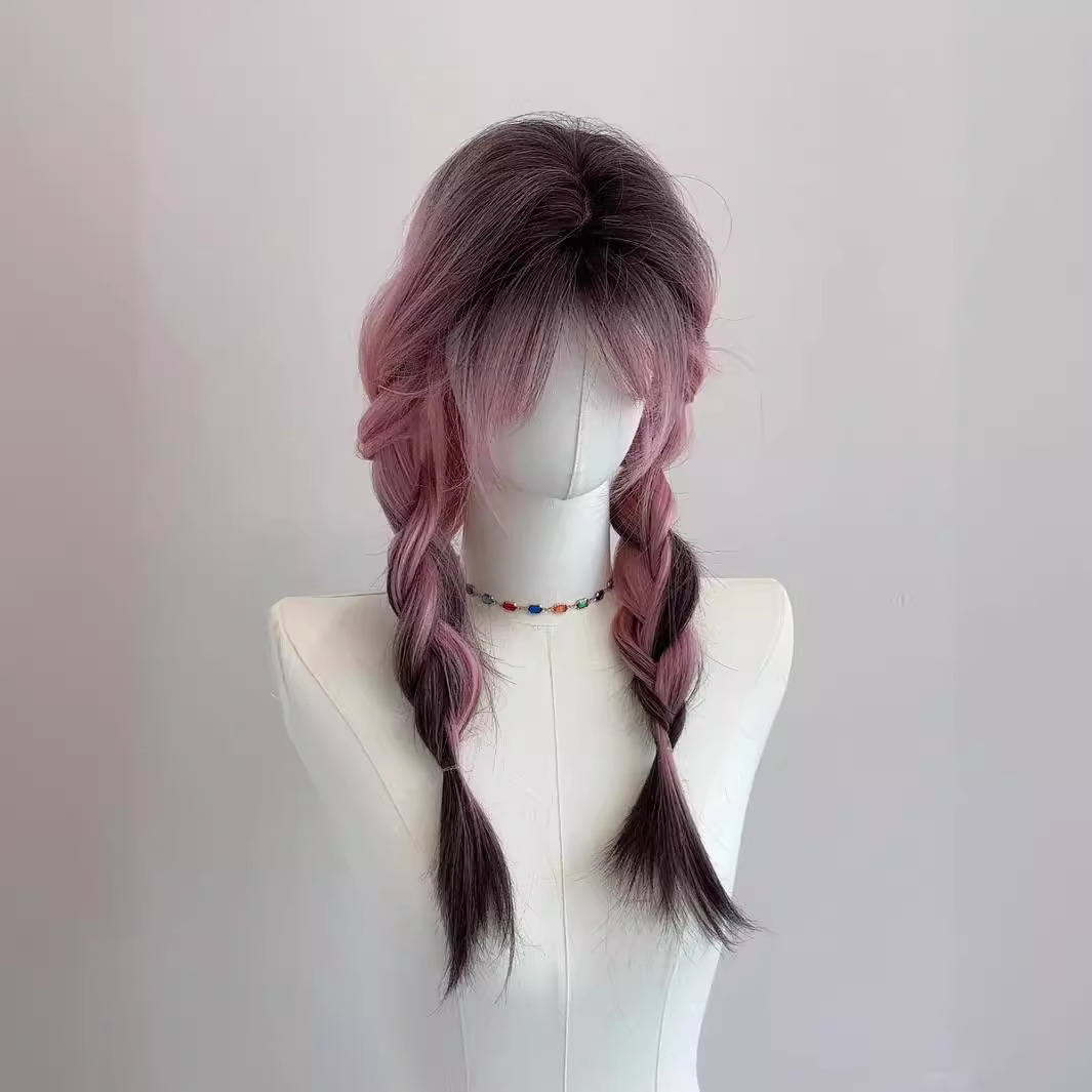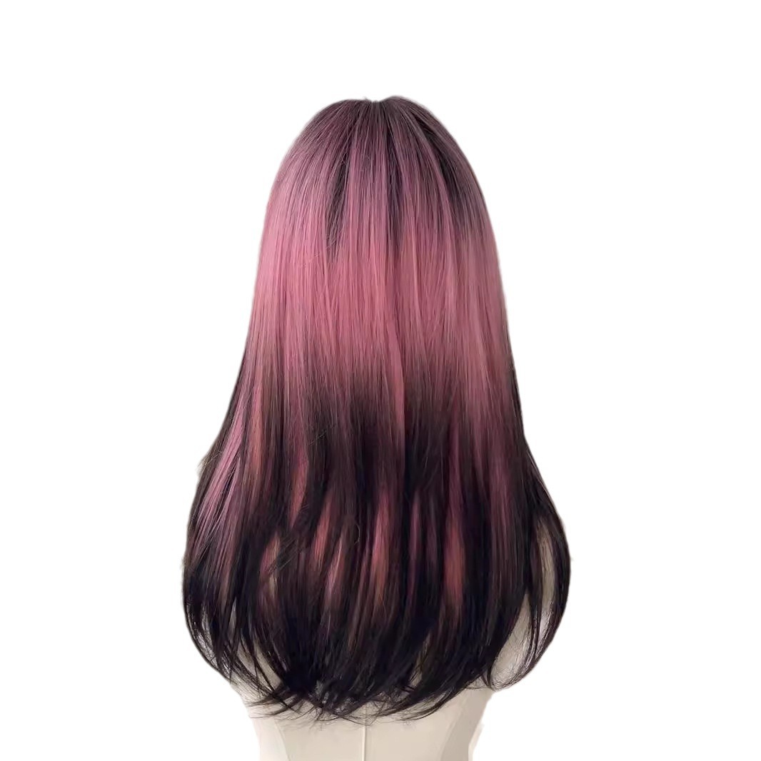 假发女全头粉色渐变黑高层次感仿真人长直发全头套