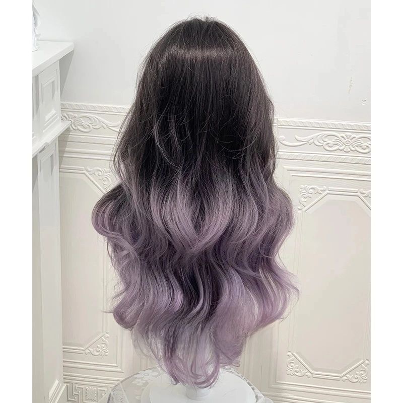 红色刘海染波浪卷发挑染八字刘海个性仿真发假发全头套