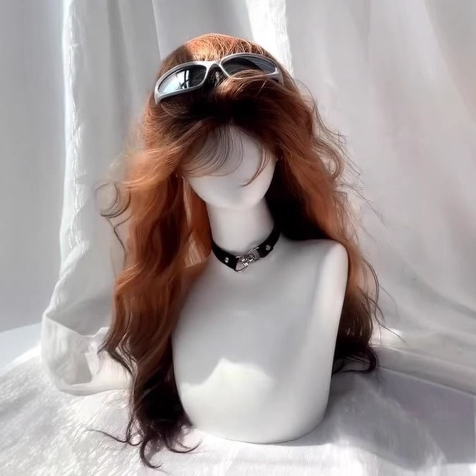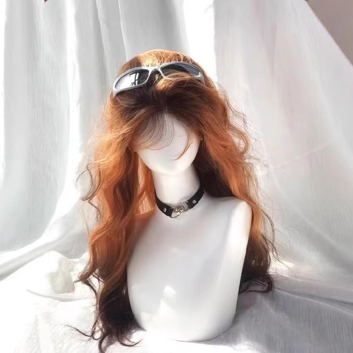 假发女橘黑渐变巴黎画染朋克亚比风中分长卷发全头套