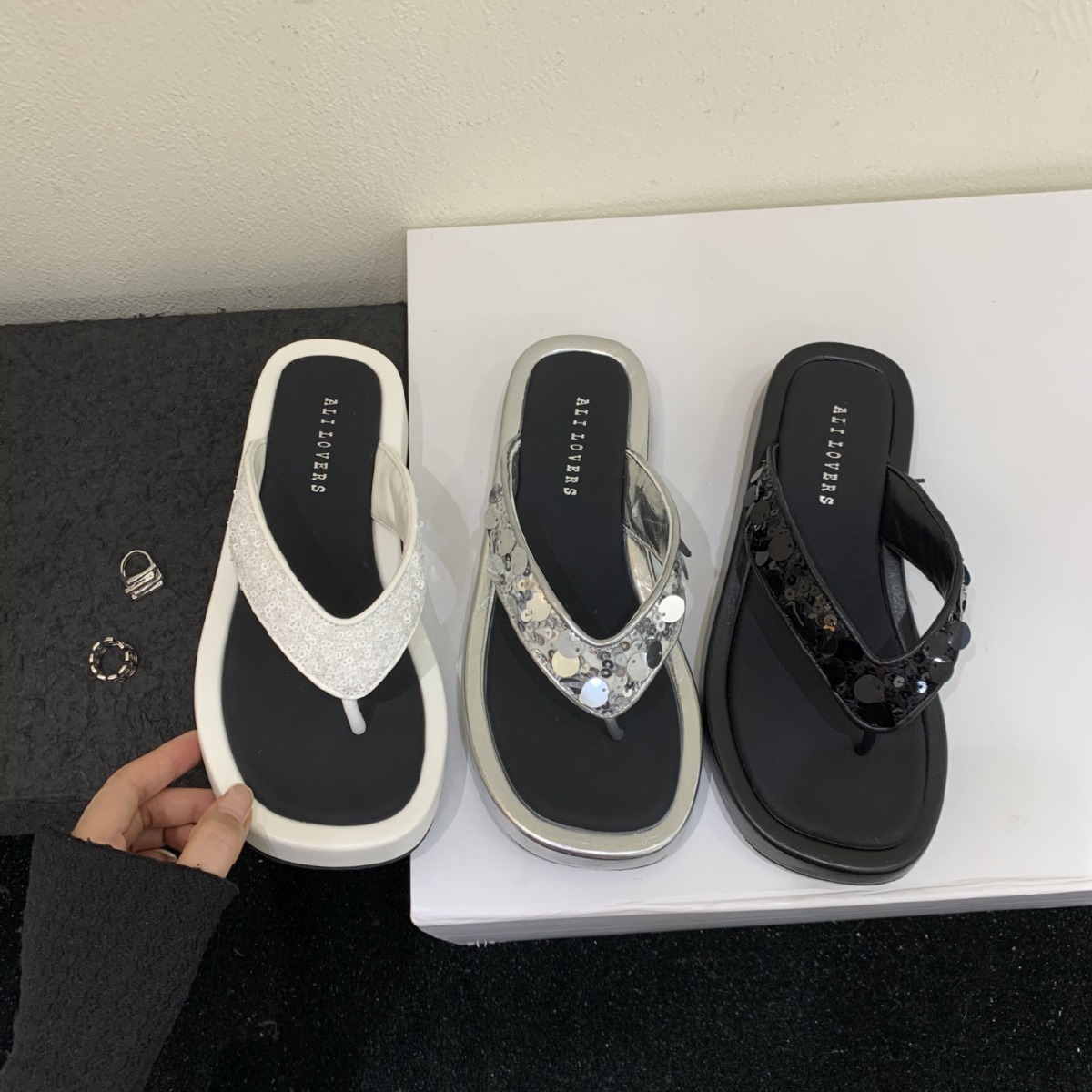 厚底韩版外穿设计感银色凉拖女夏季新款亮片夹脚防滑人字拖鞋