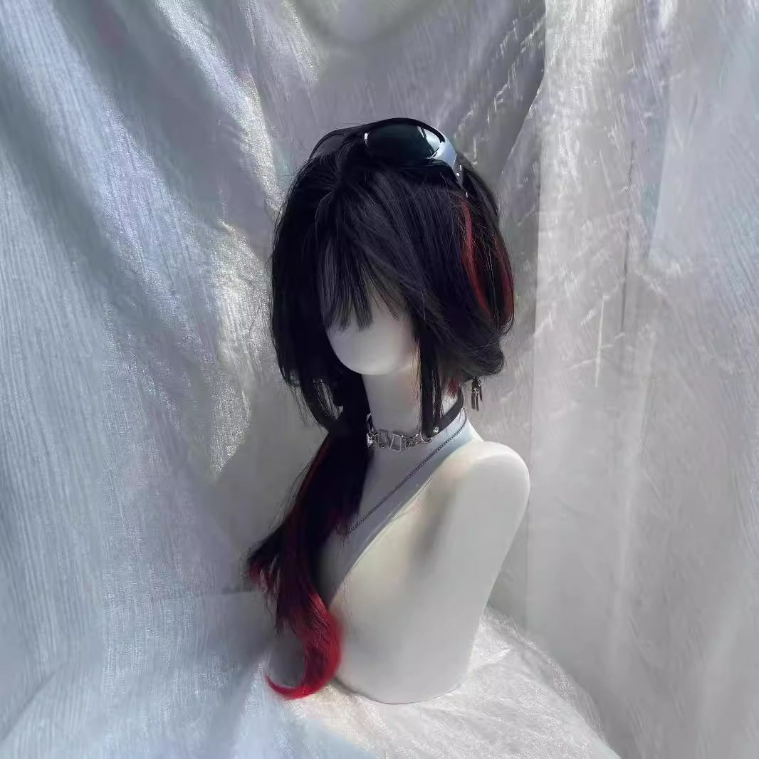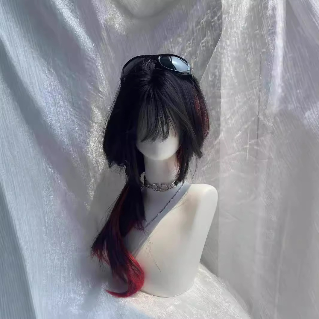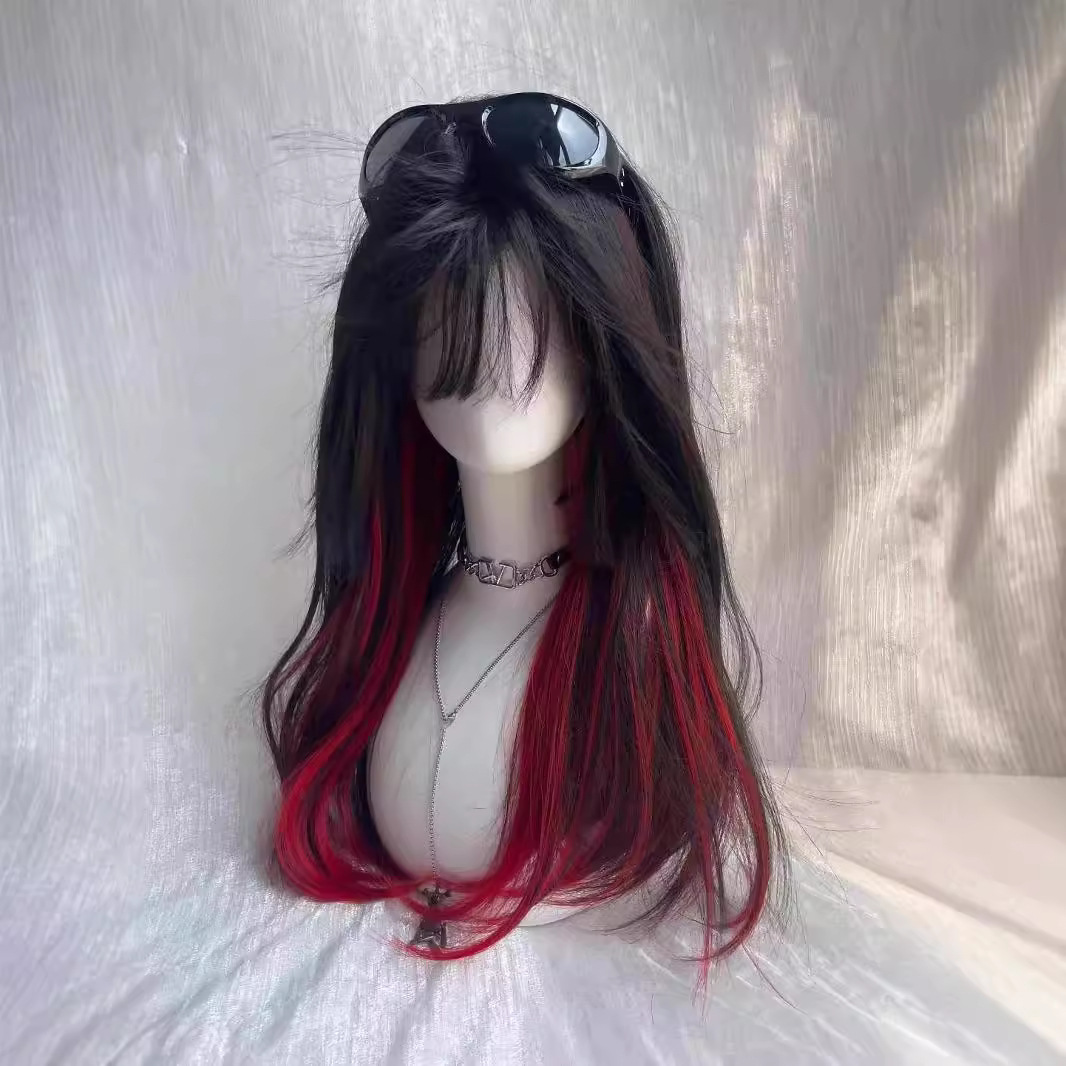 黑红色挑染公主切长直发假发女挑染哥特仿真假发全头套