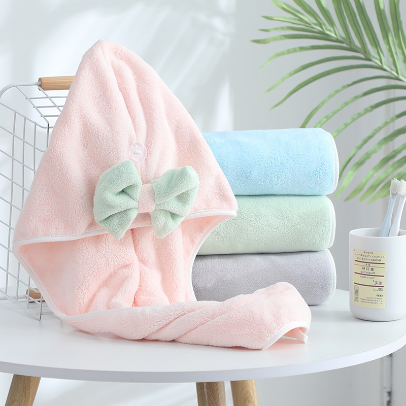 干发帽女大蝴蝶结浴帽加厚珊瑚绒速干吸水居家包头巾干发巾