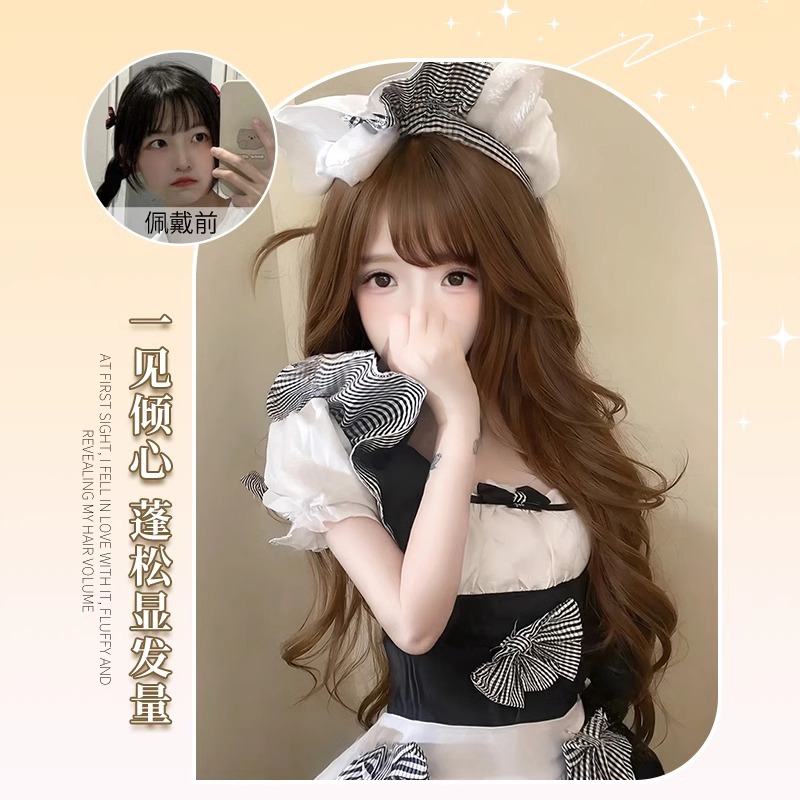 假发女长发升级大头皮水波纹长卷发lolita韩系大波浪全头套式
