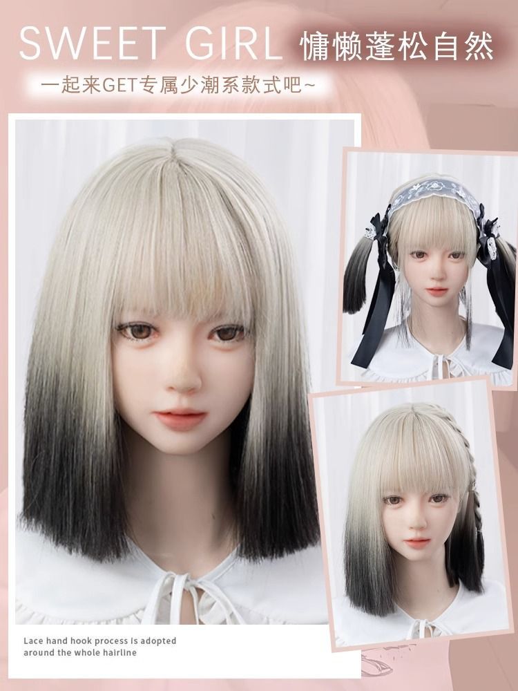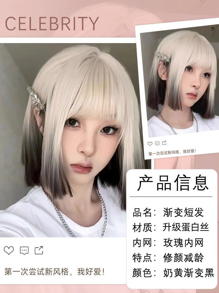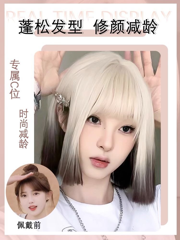 短发假发女减龄仿全真人爆顶染渐变一刀切Lolita万用假发全头套式