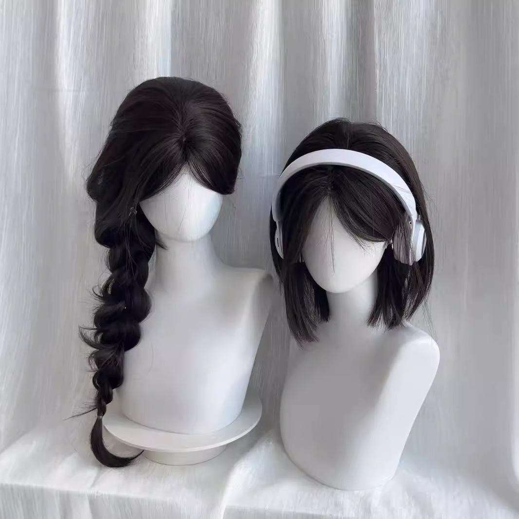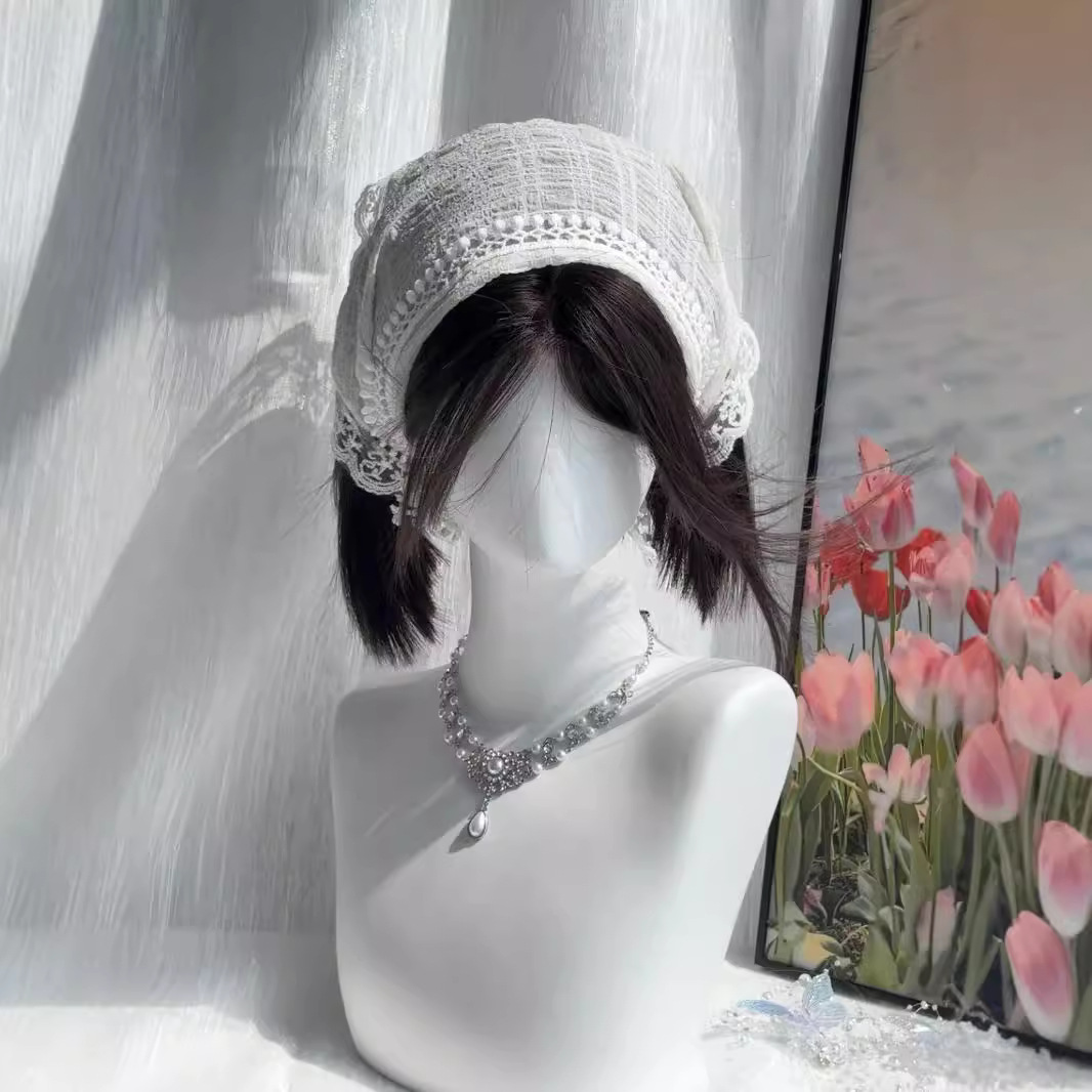 前额蕾丝中分假发女甜酷黑茶色一刀切短发全头套仿真发