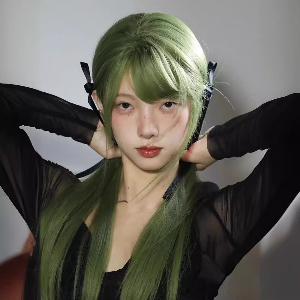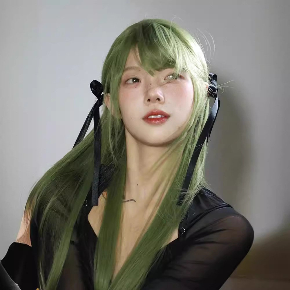 假发女长发日常漫画齐刘海仿真发丝自然全头套绿色直发假发
