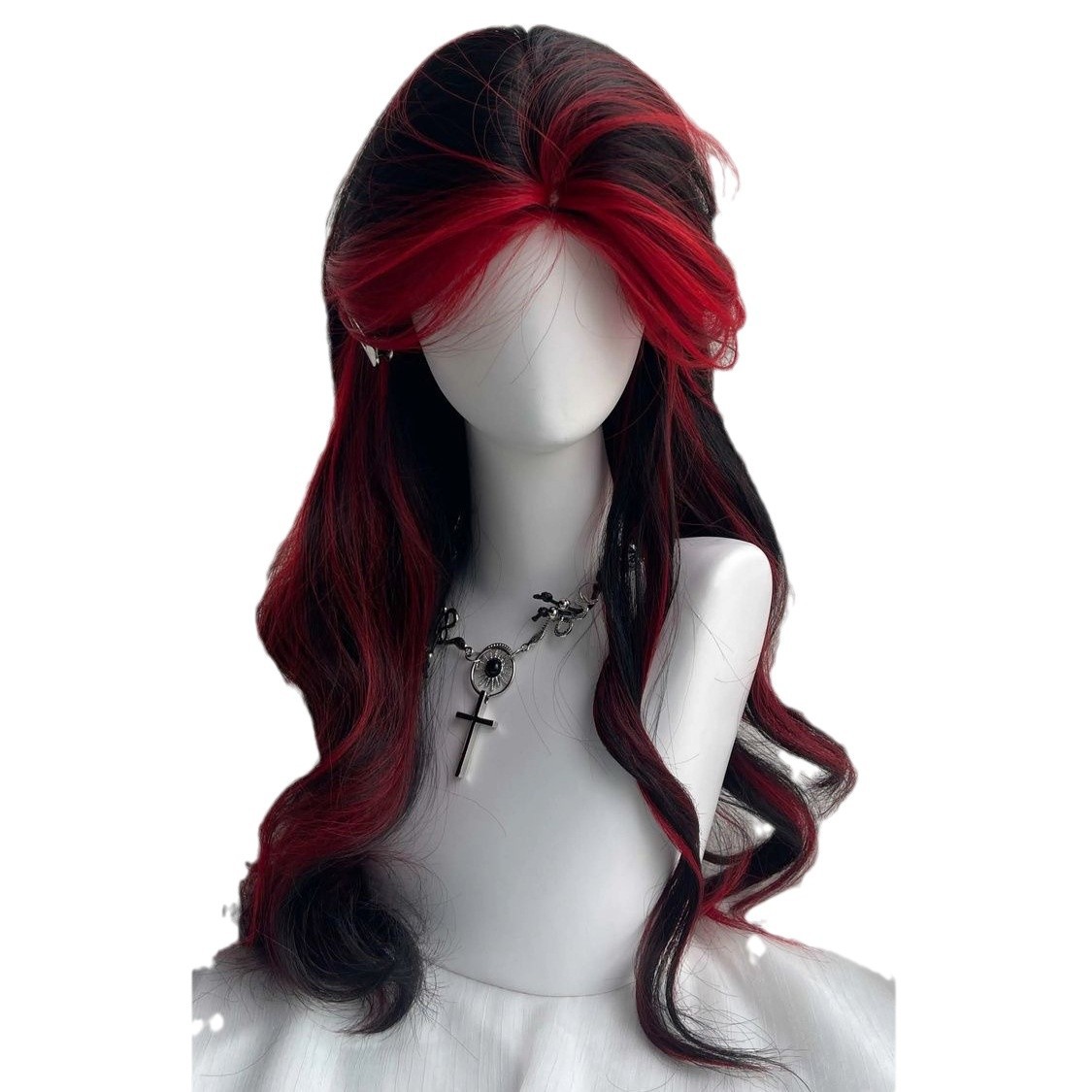 红色刘海染波浪卷发挑染八字刘海个性仿真发假发全头套