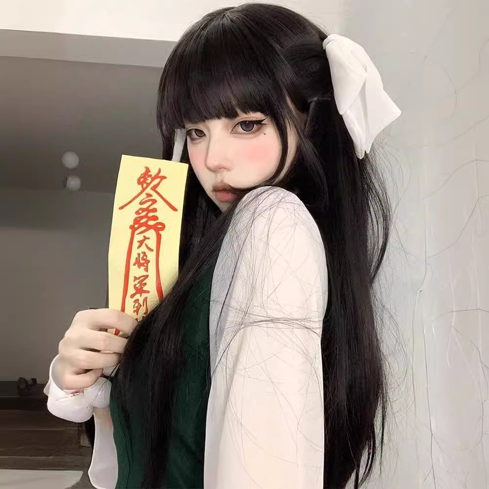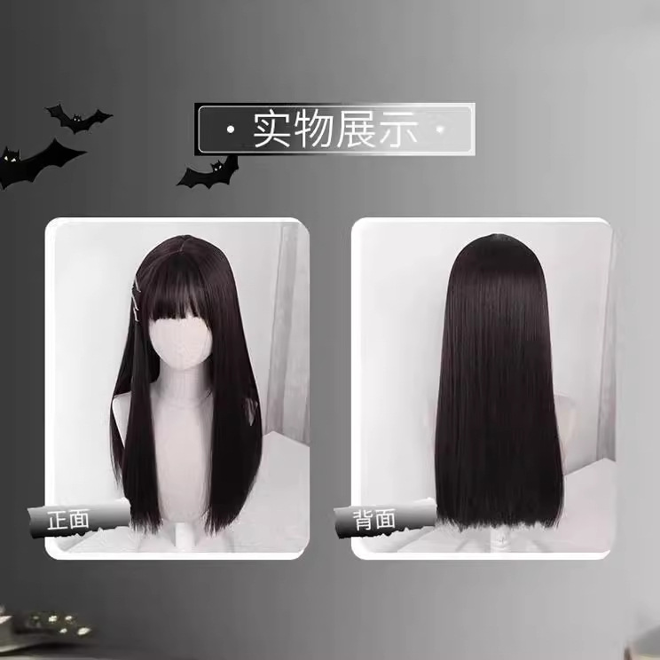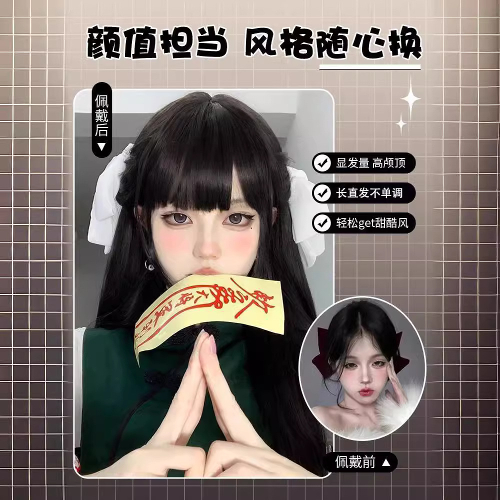 新款爆款长发全头套cos自然空气刘海黑长直仿全真人发假发套