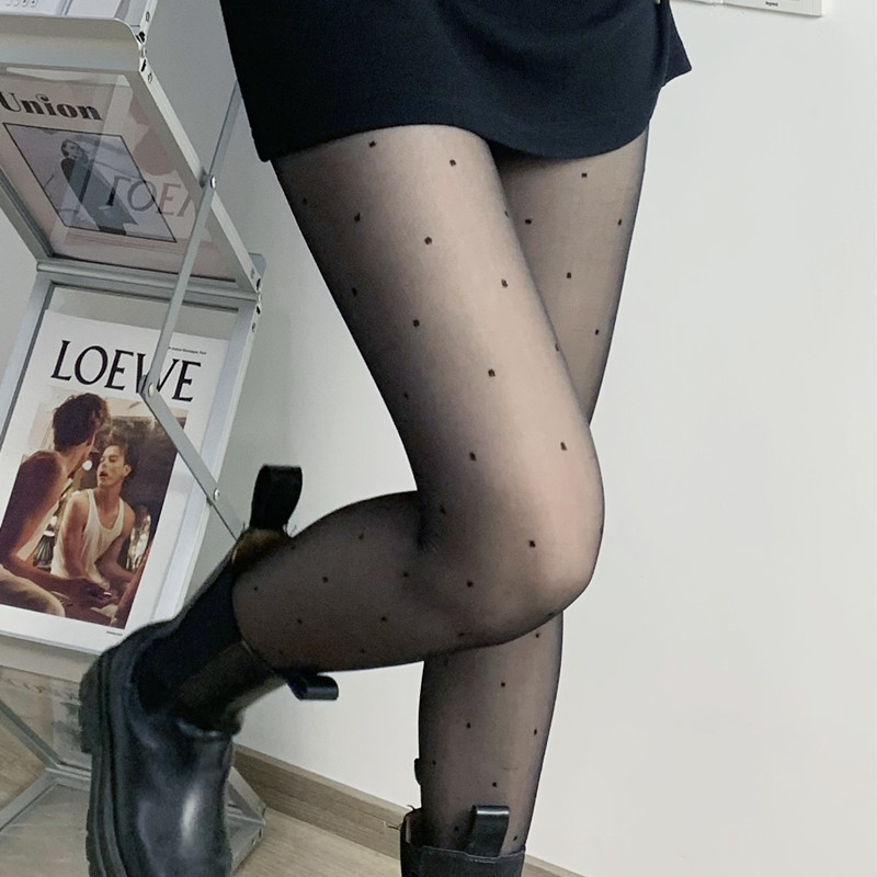 夏纯欲风黑丝幂式波点提花丝袜小圆点超薄奶白色连裤袜性感显瘦女