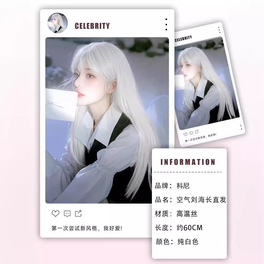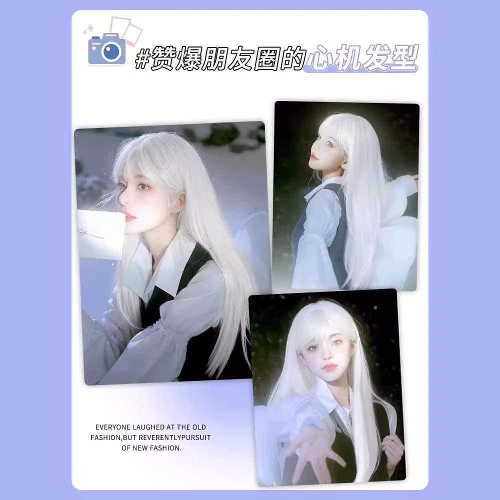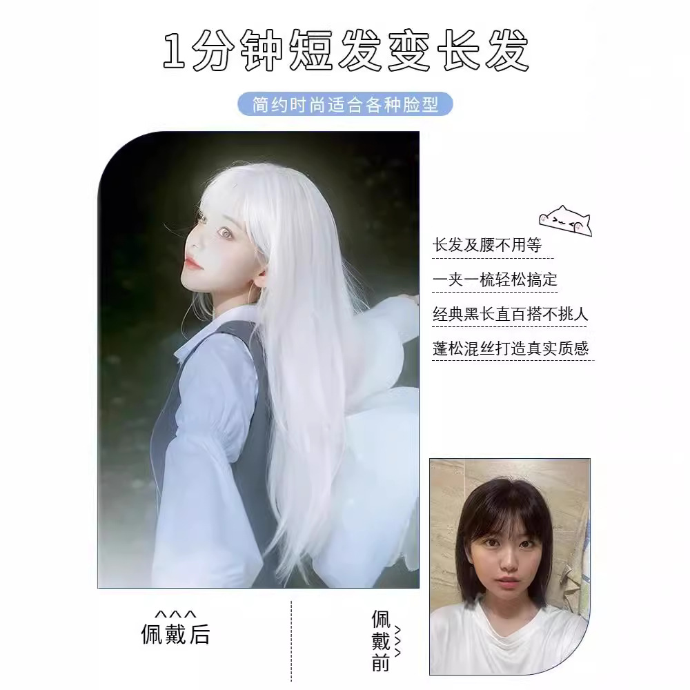 假发女长发秋冬万用cos二次元白色空气刘海长直发仿真人发全头套