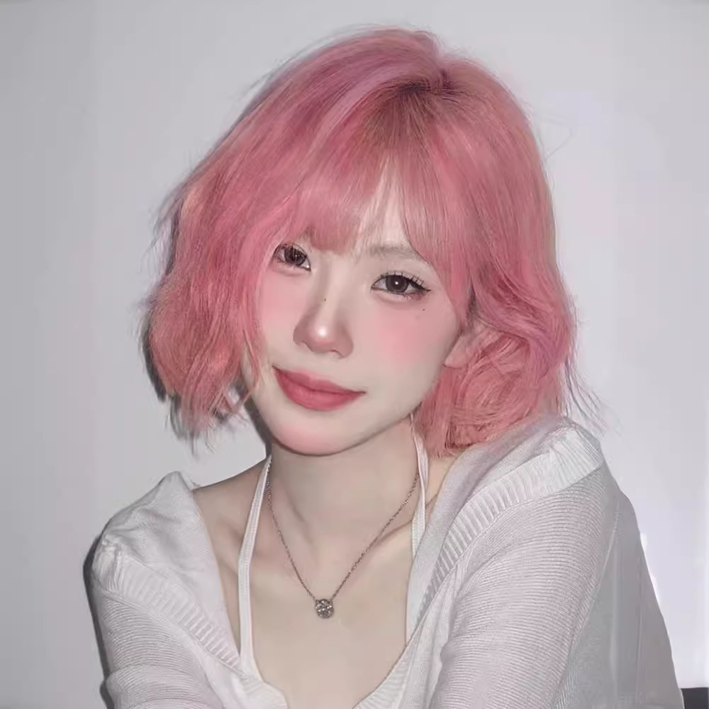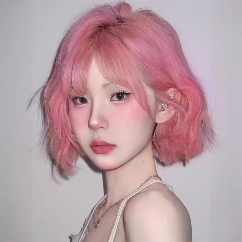 科尼粉色假发短发全头套女y2k女团粉红cos辣妹lolita齐肩发卷直发