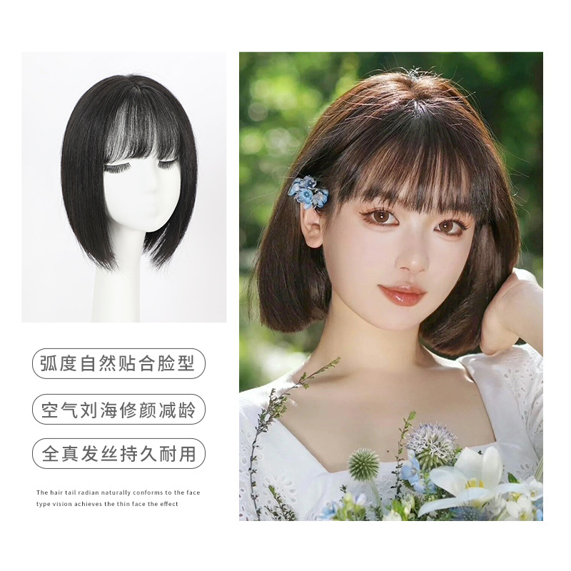 假发短发女夏季全头套式波波头空气刘海仿全真人发整顶长发假发套