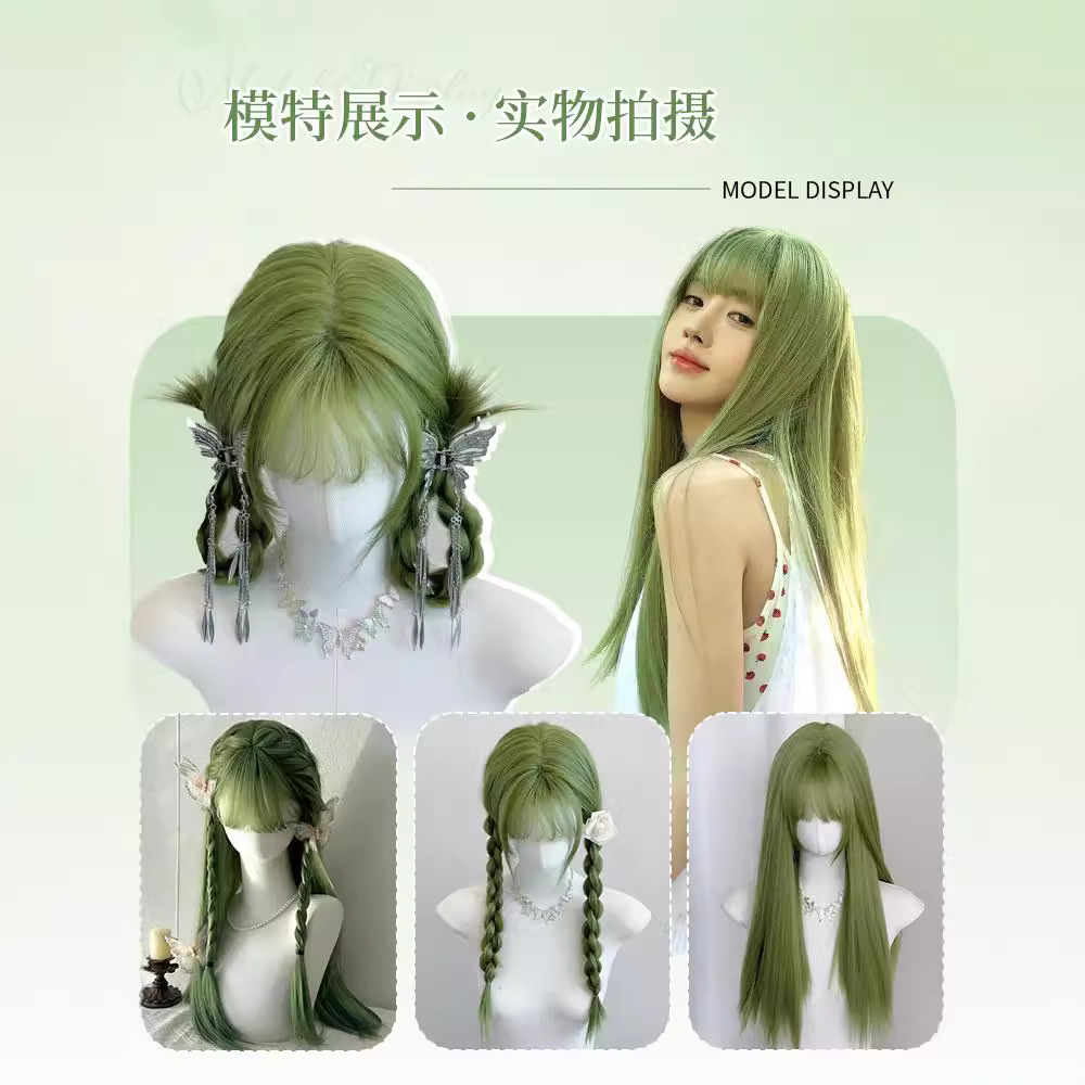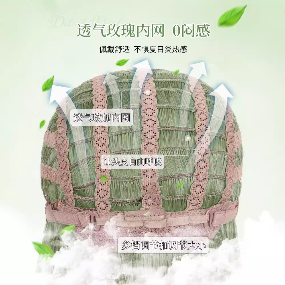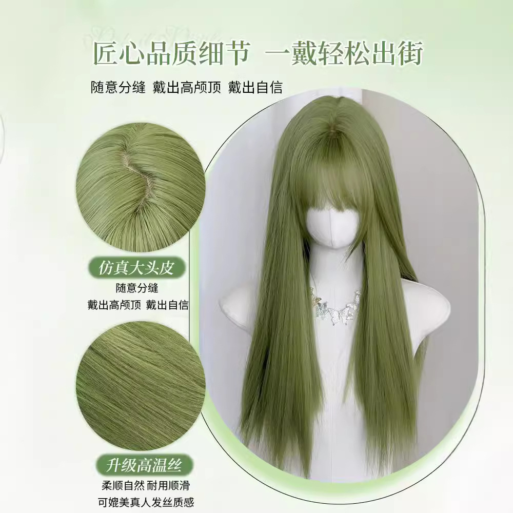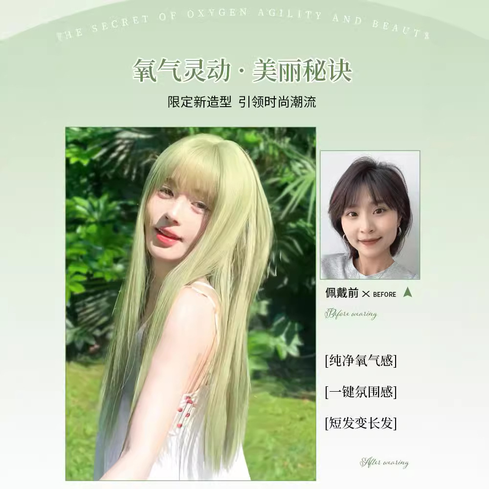 绿色假发女全头套长发夏季薄款