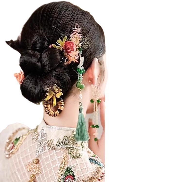 新中式辫子丸子头盘发神器发包花苞头假发女新娘仿真发髻假发发圈