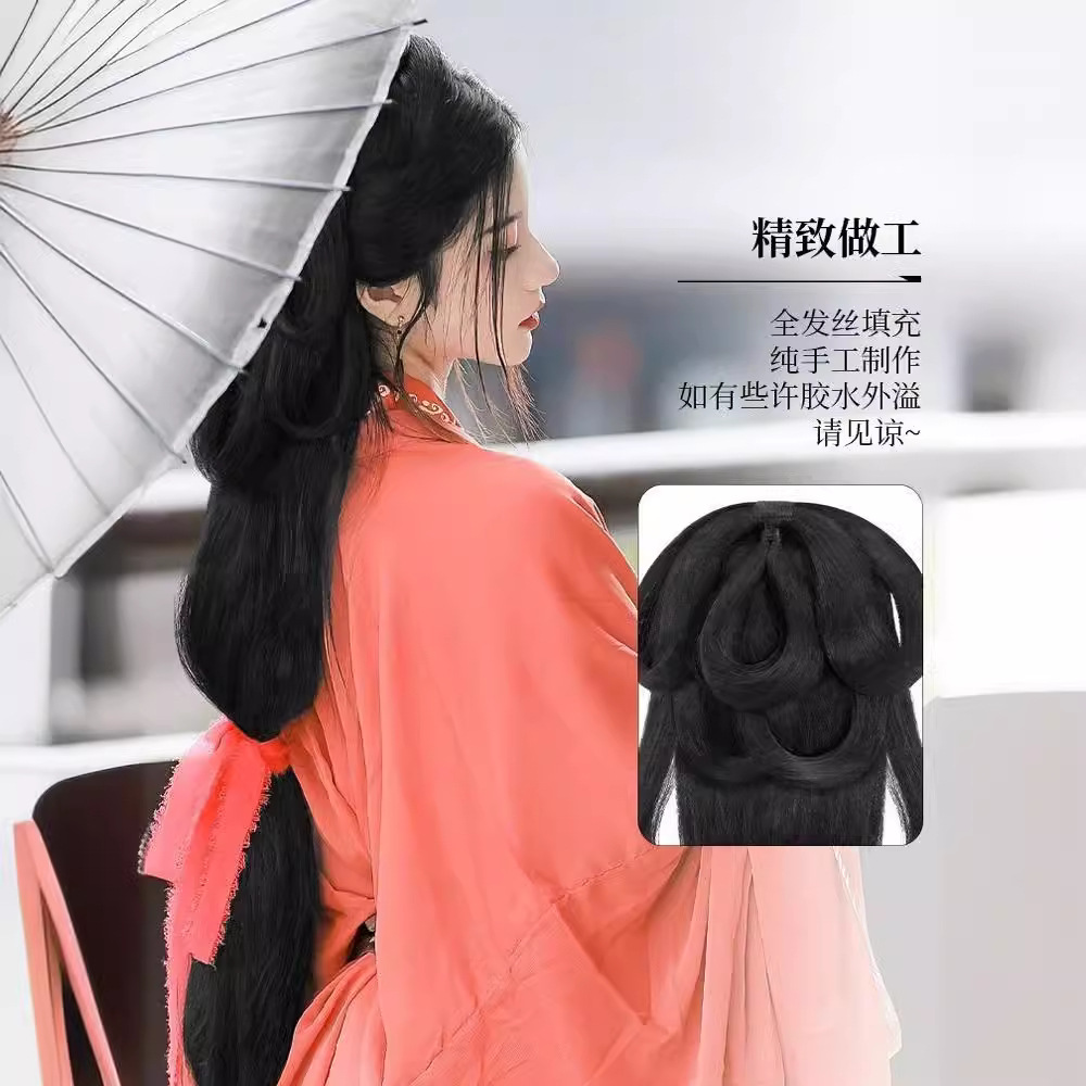 古装汉服假发一体式后压发髻古风全发丝后脑勺垫发包