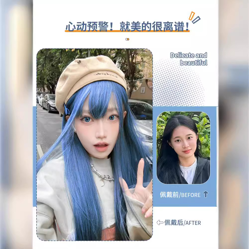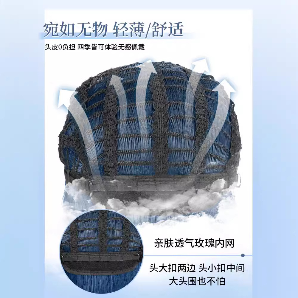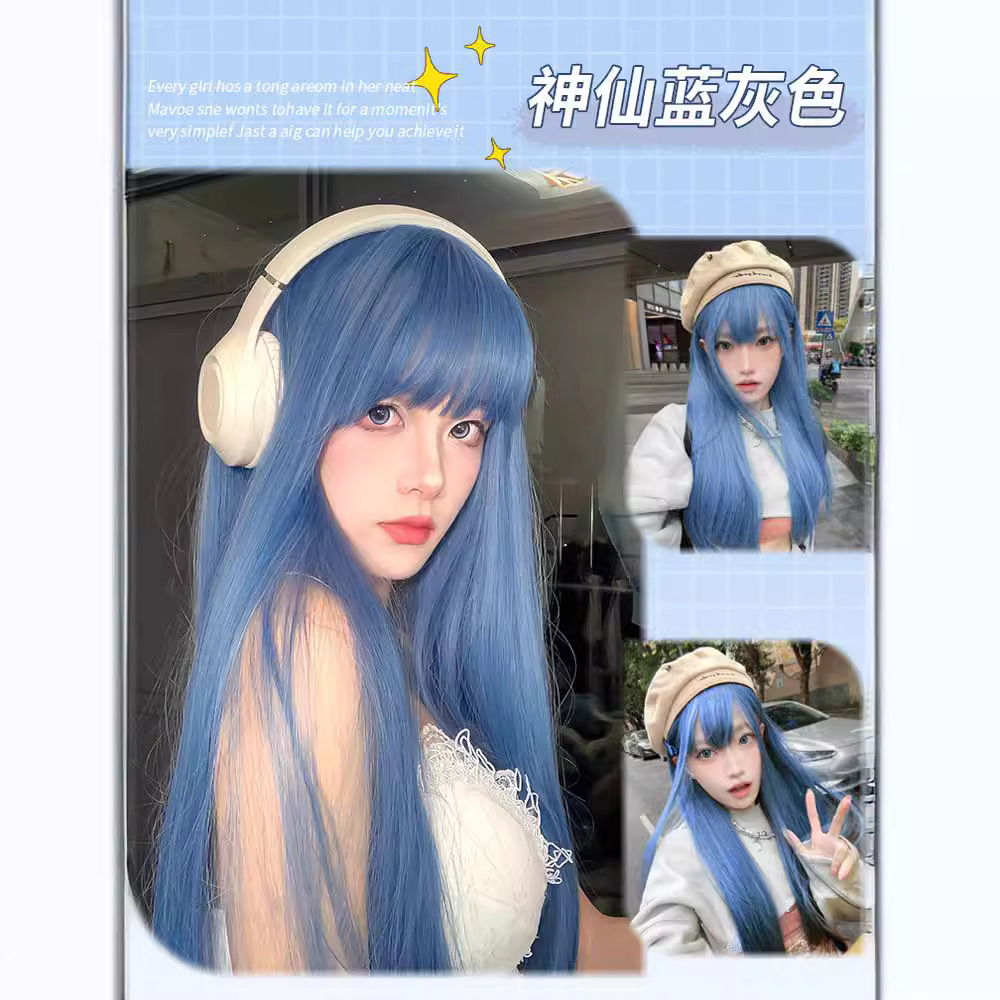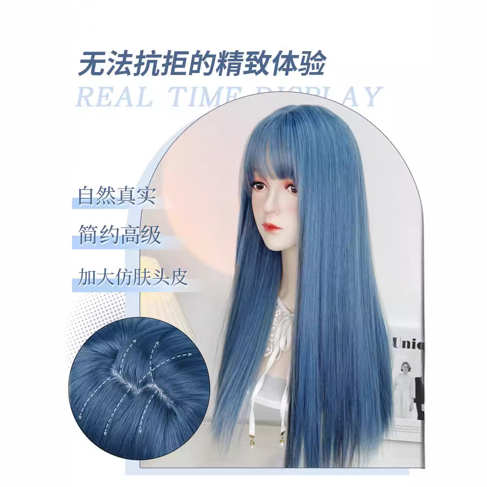 假发女长发全头套式动漫万用cos蓝灰色长直发自然仿真人发假发套